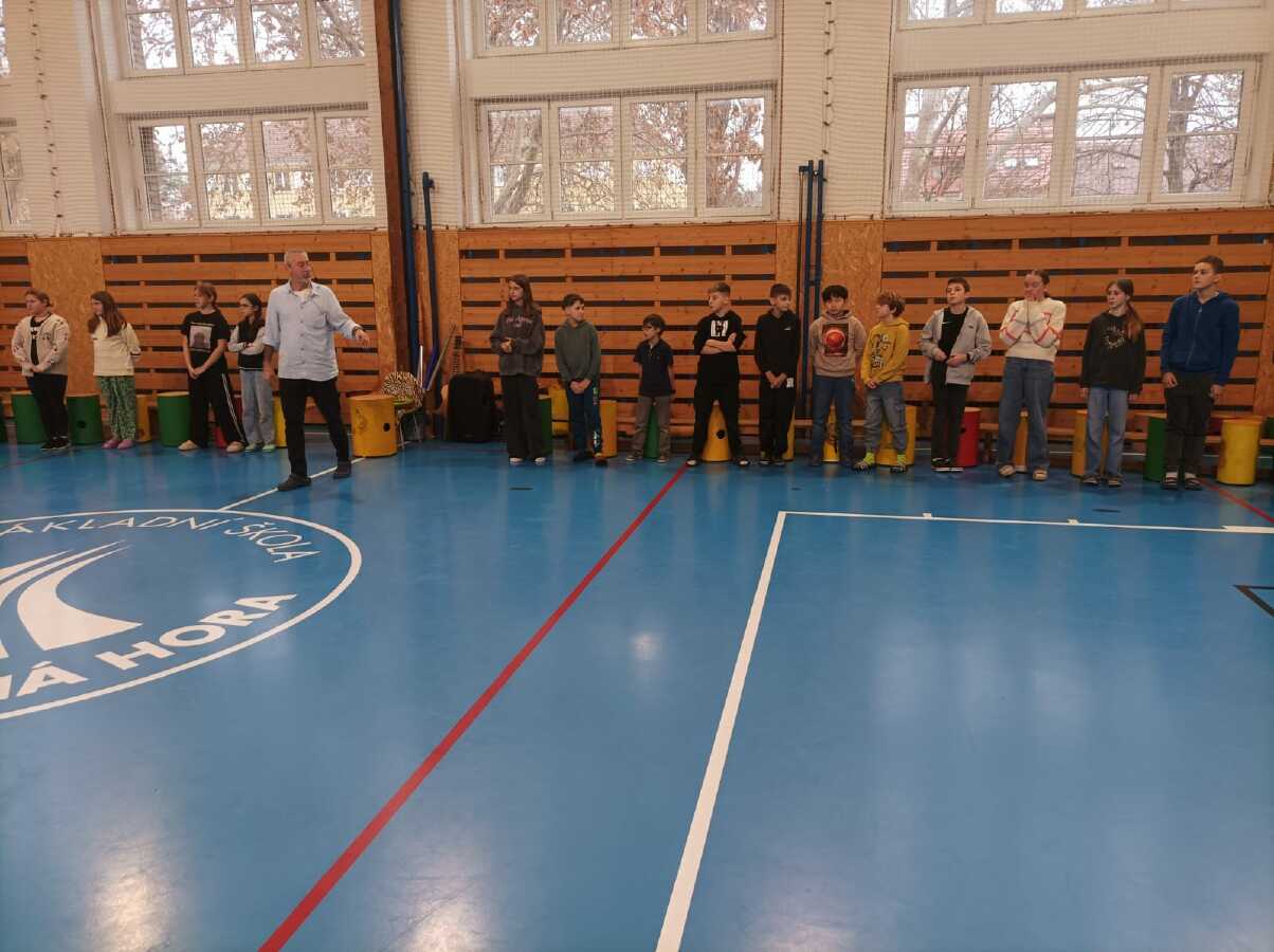 Dnes z tělocvičny na naší škole zněly zvuky nejrůznějších bubnů. Probíhal zde totiž za finanční podpory SRPDŠ zážitkový workshop pro všechny žáky školy.