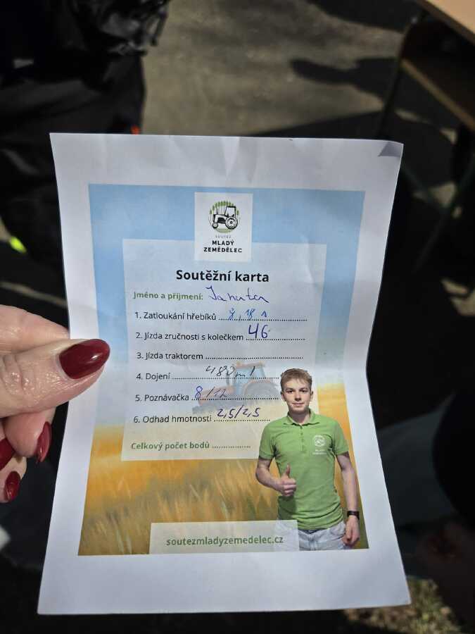 Ve středu 1.4.2026 se na Střední zemědělské škole a Středním odborném učilišti Čáslav uskutečnilo regionální semifinále prestižní soutěže Mladý zemědělec. Naši školu reprezentovali dva naši žáci, Matěj Janata a Kryštof Zámiš, kteří přijali výzvu poměřit své síly s konkurencí v disciplínách prověřujících nejen znalosti, ale i zručnost a pevné nervy.