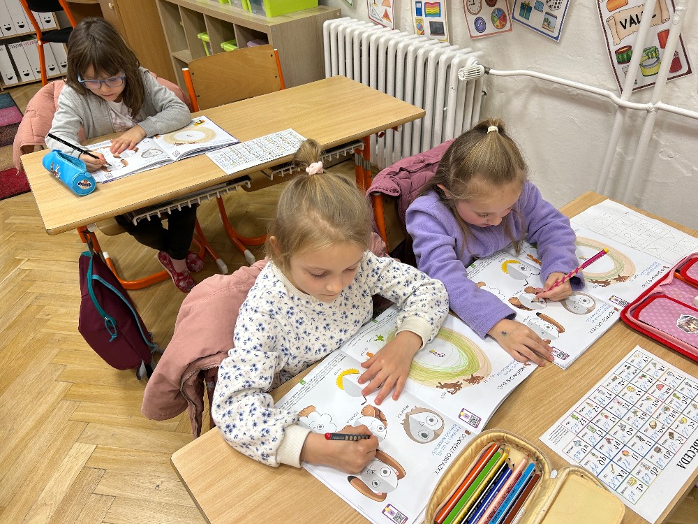 Budoucí prvňáčci se pilně chystají na vstup do školy. Učí se správně držet tužku, trénují orientaci, poznávají čísla i písmena, rozvíjejí rytmické cítění, učí se překonávat překážky, trénují trpělivost, učí se pracovat společně i samostatně. Zápis do 1.třídy se nezadržitelně blíží…