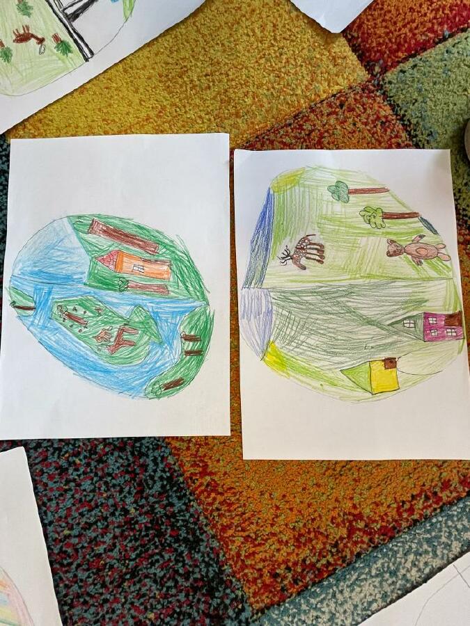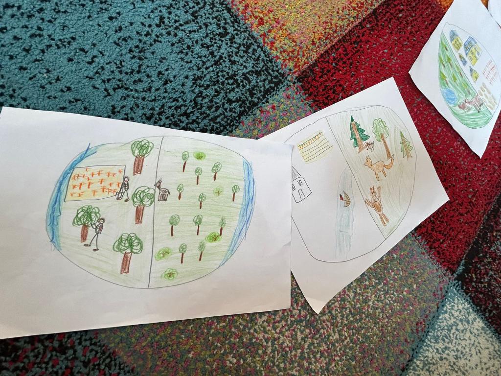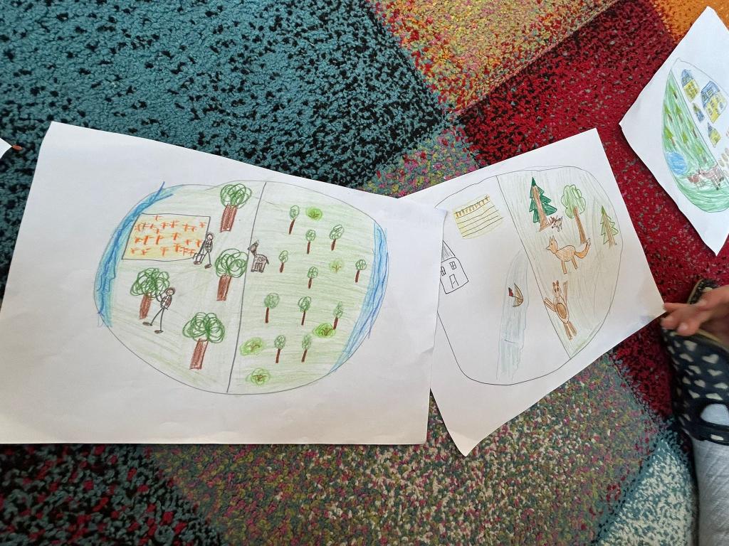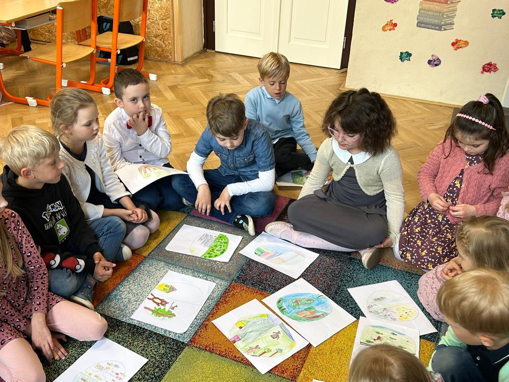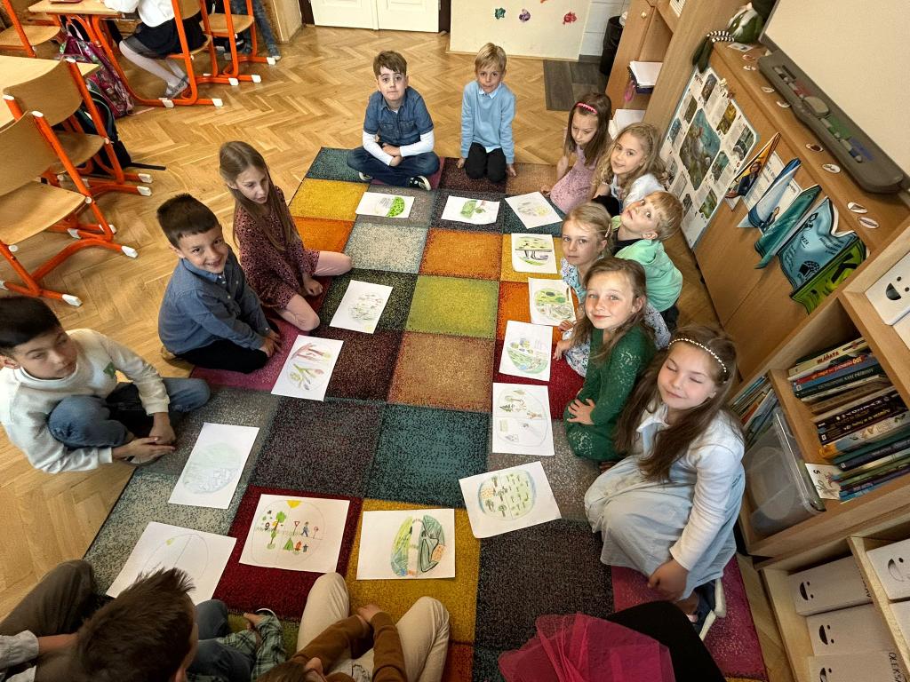 V další části projektu se pokusili výtvarně i slovně ztvárnit svou představu o planetě, kde by polovina prostoru patřila přírodě a druhá polovina lidem. Jejich nápady byly nejen kreativní, ale často i velmi inspirativní.