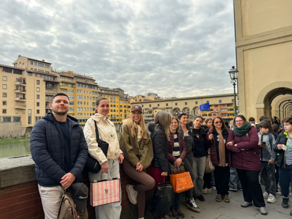 Poslední zastávkou naší prohlídky byl slavný most Ponte Vecchio, známý svými malými obchody postavenými přímo na mostní konstrukci. Zde naše oficiální prohlídka skončila a my jsme se poté přesunuli zpět na nádraží, odkud jsme se vlakem vrátili do Viareggia. Výlet nám umožnil poznat nejen krásu florentských památek, ale také atmosféru města, které výrazně ovlivnilo evropské umění a kulturu.