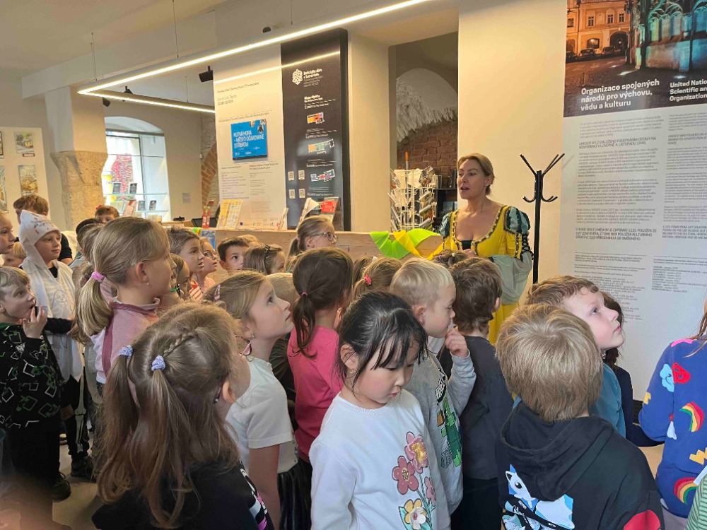 UNESCO - HRANÍ aneb, slavíme v Dačického domě, byl připravený program pro žáky ze školní družiny, na který se vydali ve středu 22. 10. 2025. Návštěvou jsme oslavili výročí zápisu Kutné Hory na Seznam světového dědictví UNESCO. Čekalo na nás odpoledne plné zábavy. Plnili jsme úkoly inspirované českými městy (Litomyšl, Český Krumlov, Telč…) nechybělo ani dobrodružství. Po splnění všech zadaných úkolů čekala na každého účastníka sladká odměna. Děkujeme pracovníkům lektorského centra DD za krásné odpoledne.