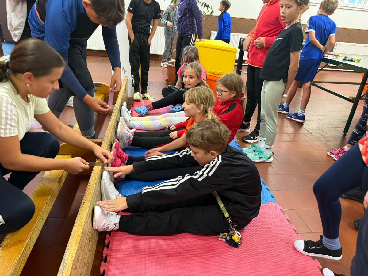 Všichni sportovci využili během celého dopoledne školní tělocvičnu, aulu, dvůr i hřiště na