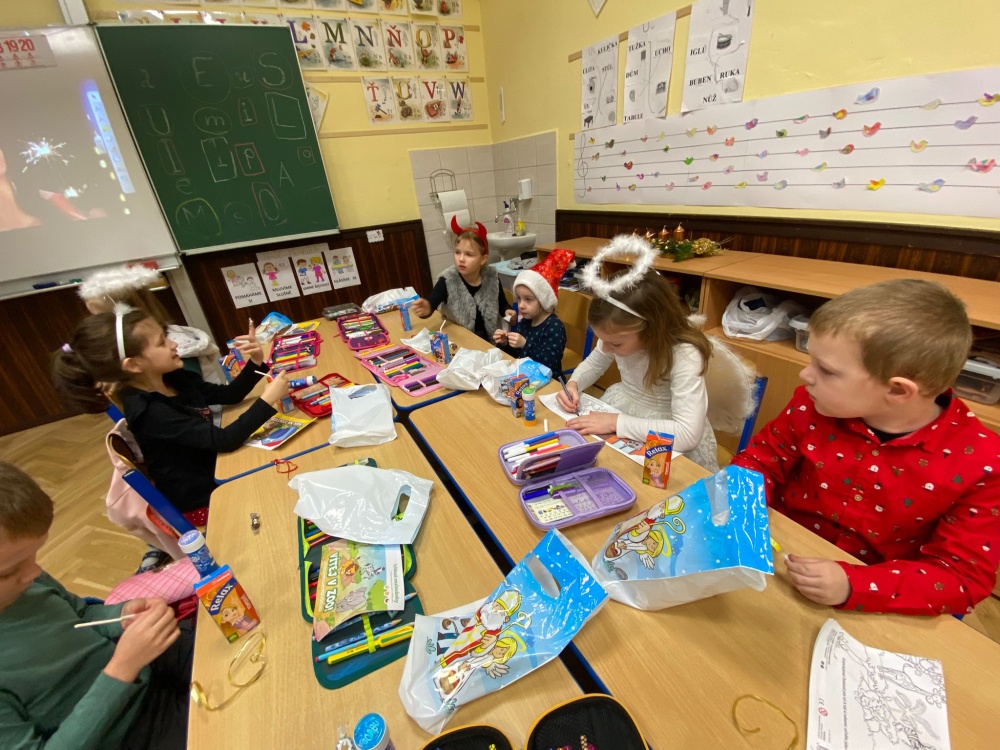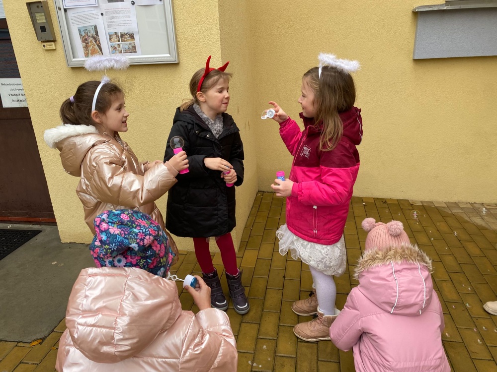 Mikulášský projektový den začal společným povídáním o tradici svátku svatého Mikuláše. Krátce poté děti ve třídě navštívil Mikuláš se svými anděly a čertem. Atmosféru zpříjemnily písničky a tanečky s mikulášskou tématikou.