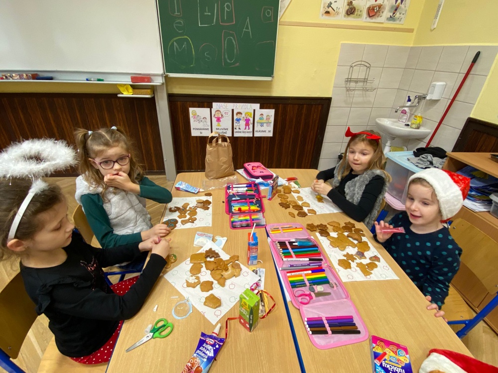 Závěr dne patřil sladké tečce. Děti ve třídě ozdobily perníčky, které si den předem napekly ve škole s rodiči, a poté si na nich pochutnaly.