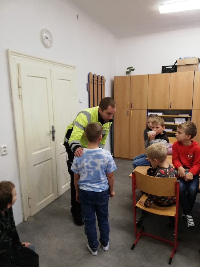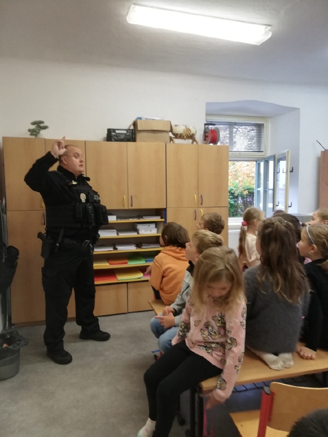 Společně s dětmi si povídali o tom, jak správně postupovat při nálezu injekční stříkačky, co dělat v případě, že by se někdo pokusil odvést jejich kamaráda, a také jak se bezpečně pohybovat po silnici. Prvňáčci si připomněli důležitost používání reflexních prvků a správného chování na přechodu pro chodce.