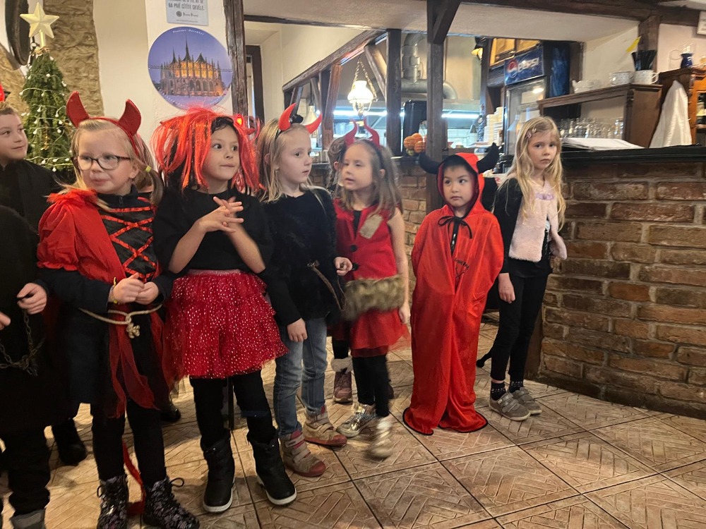 Prvňáčci ze třídy 1.B vystoupili pro místní seniory ze Svazu postižených civilizačními chorobami (Spcch v ČR). Předvedli své čertovské pásmo písniček a básniček, které si pilně nacvičovali během vyučování. Byla to pro ně velká výzva i radostná událost. Na vystoupení dorazili s nadšením, v kostýmech malých čertíků, a už při jejich příchodu se rozzářily oči všech přítomných. Pásmo mělo velký úspěch. Senioři děti ocenili potleskem, úsměvy i dojetím. Bylo vidět, jak je potěšil nejen samotný program, ale i to, že si na ně naši nejmladší udělali čas a přišli jim zpříjemnit adventní odpoledne.