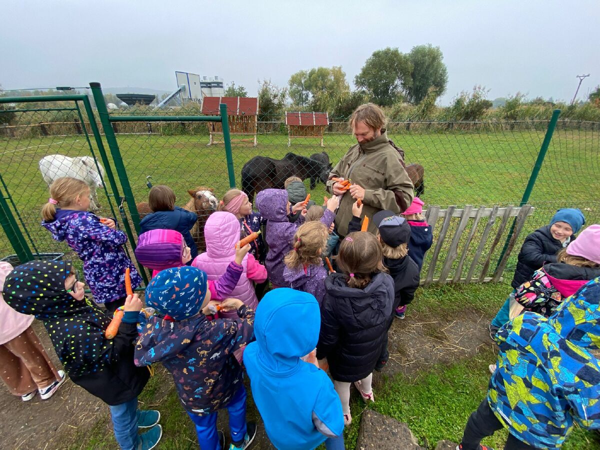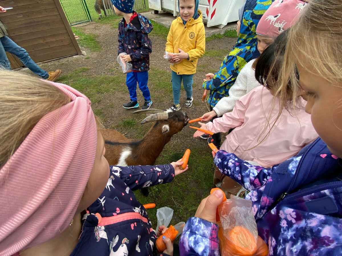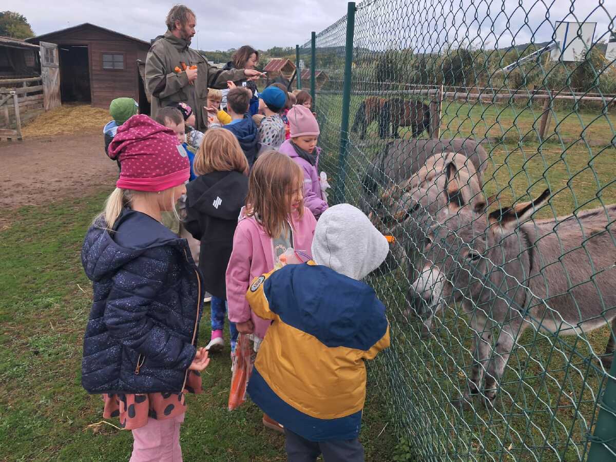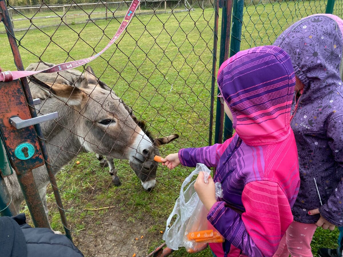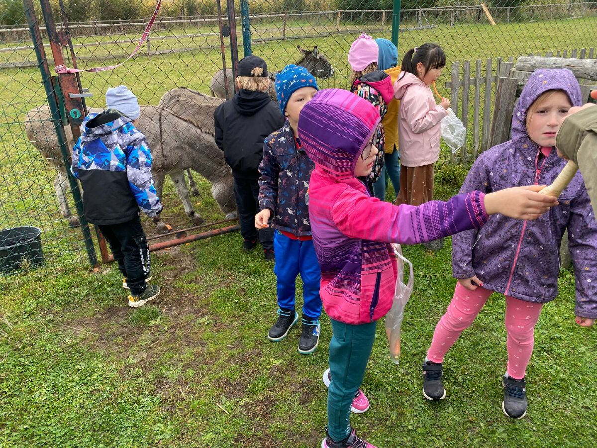 Den zvířat si připomínáme různě. Naši nejmenší se vydali za zvířátky do kutnohorského útulku. Děti měly možnost si prohlédnout celé zázemí, nahlédly do života a osudů pejsků v útulku. Dověděly se, jak se pejsek čipuje, co to znamená adopce i proč se cizí pejsek bez svolení nehladí. Pak děti zamířily i na Ranch Karlov, kde čekali čtyřnozí obyvatelé s chutí na něco dobrého. Čerstvá mrkev udělala radost koníkům, oslíkům i dalším zvířátkům.