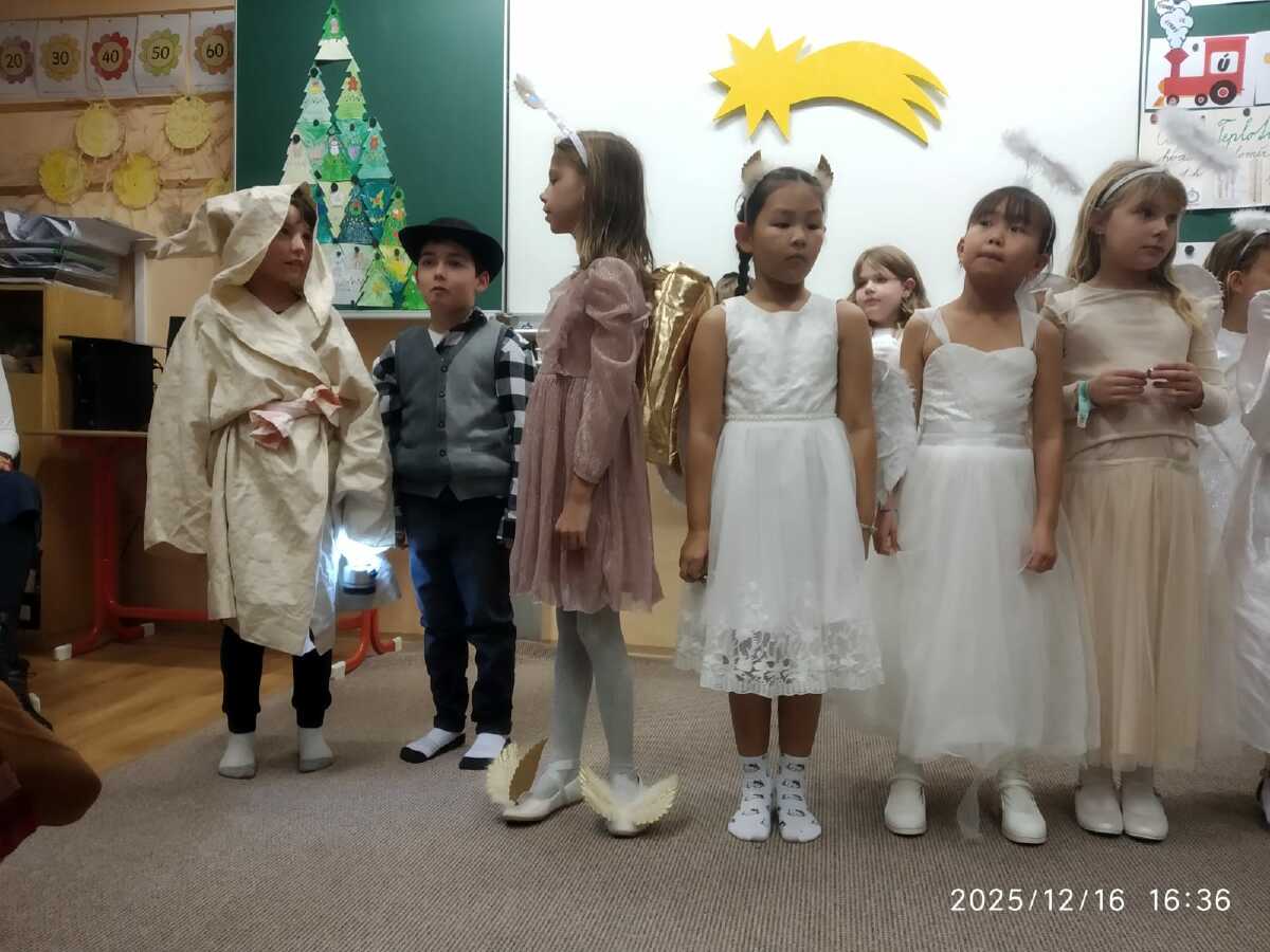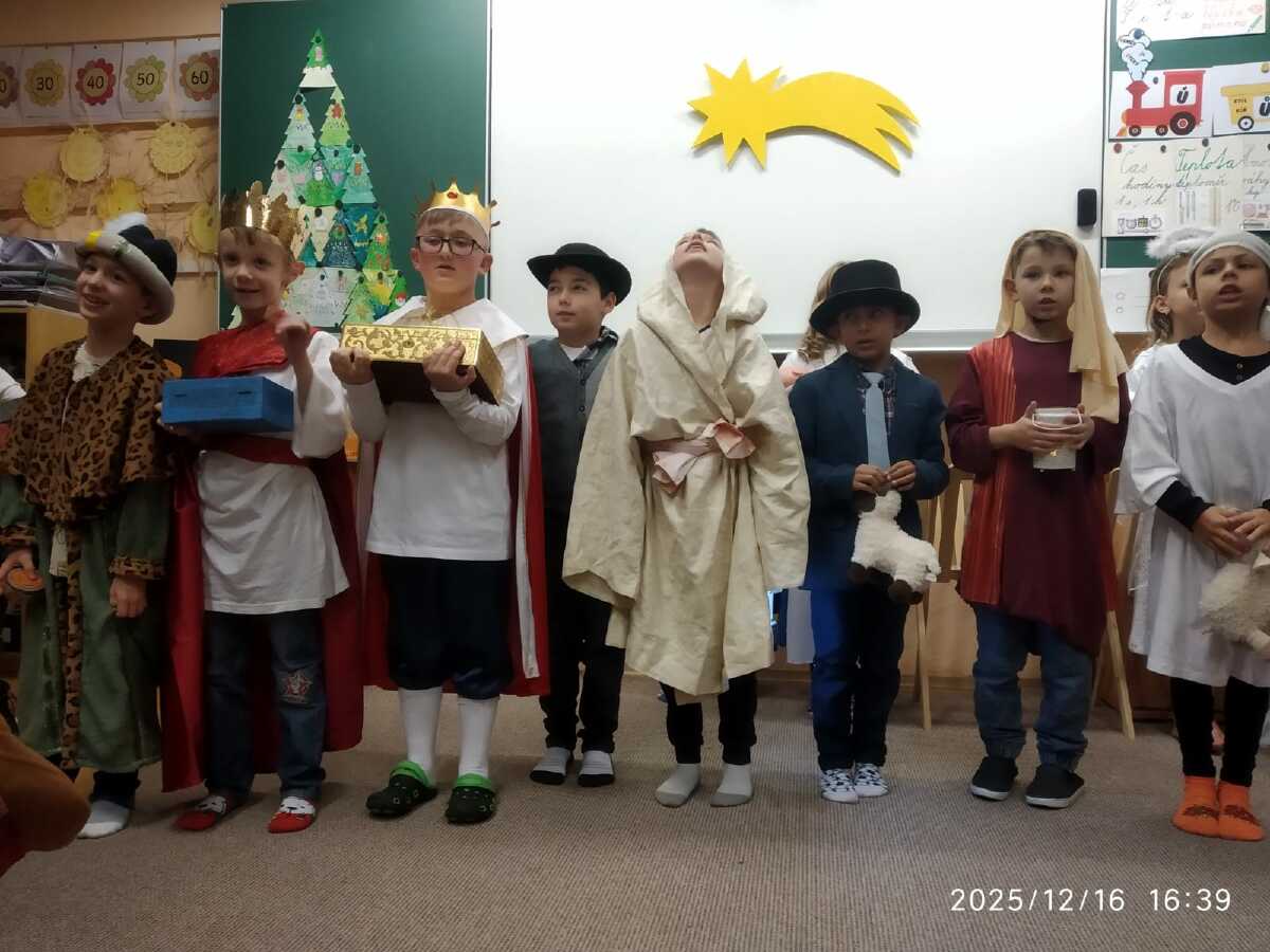 V úterý 16.12. předvedly děti svůj Vánoční příběh nejdříve dopoledne seniorům v pečovatelském domě a večer svým rodičům a prarodičům ve škole.