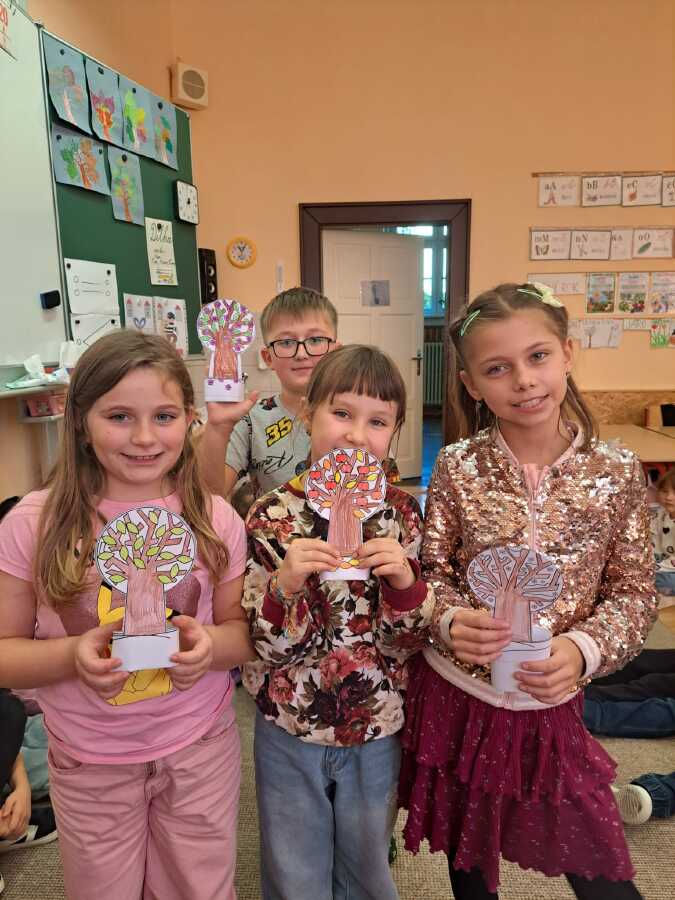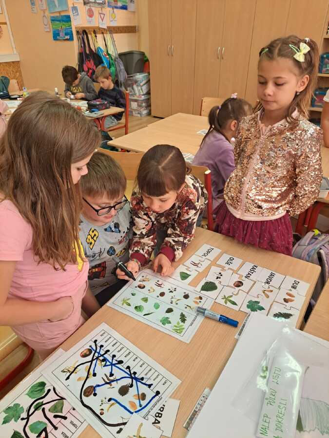 Již celý týden se ve výuce věnujeme stromům a naše snaha vyvrcholila v pondělí 20.10.-Den stromů projektovým dnem s centry aktivit. Druháci vytvořili výstavu, myšlenkovou mapu, hráli pexeso, skládali puzzle, vytvářeli výtvarnou podobu stromů a keřů, četli s porozuměním a pracovali s tablety. Moc děkujeme kamarádům z 5.A za pomoc s elektronikou. Akční vyučování nás moc bavilo.