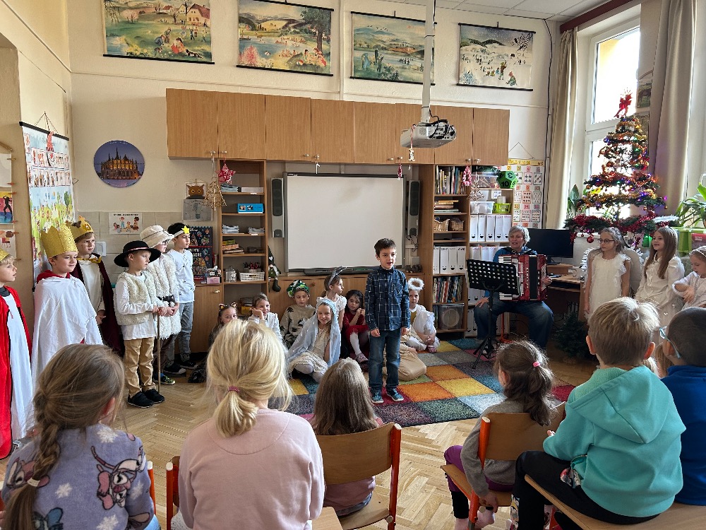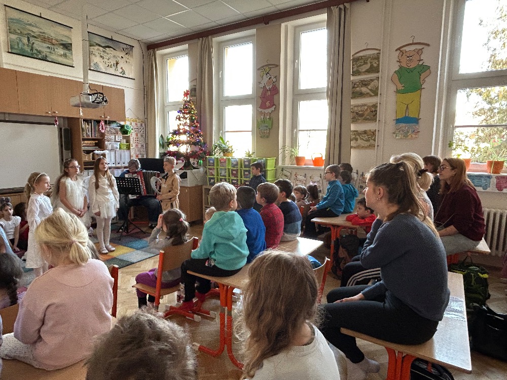 2.B zahrála vánoční pohádky pro děti z MŠ Benešova- Kytky