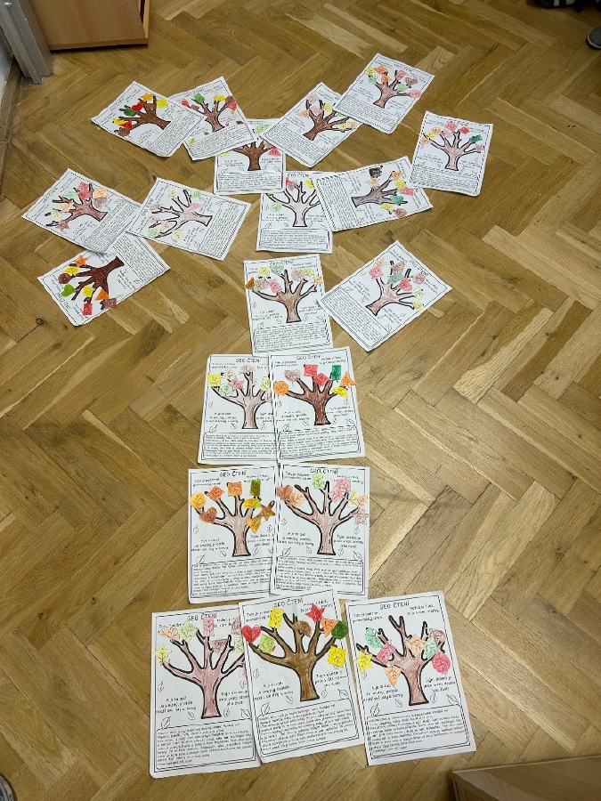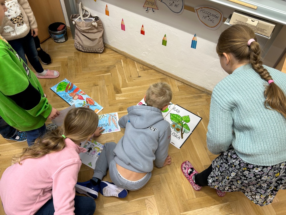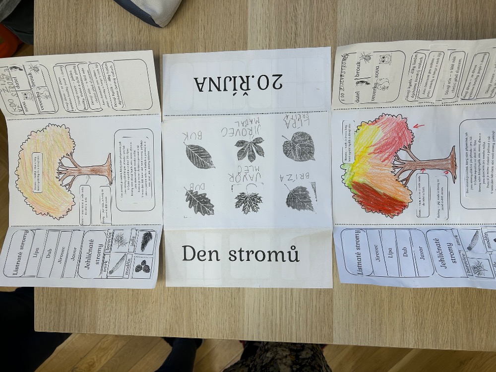 Výstupem tohoto dopoledne byl jednoduchý lapbook, který si děti vyrobily a slouží jim jako učební pomůcka. V samotném závěru měly děti poznávačku stromů. Těšíme se na další aktivity.