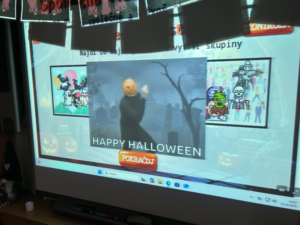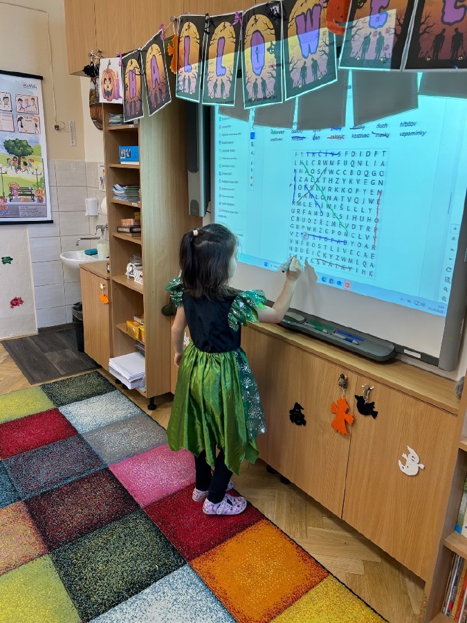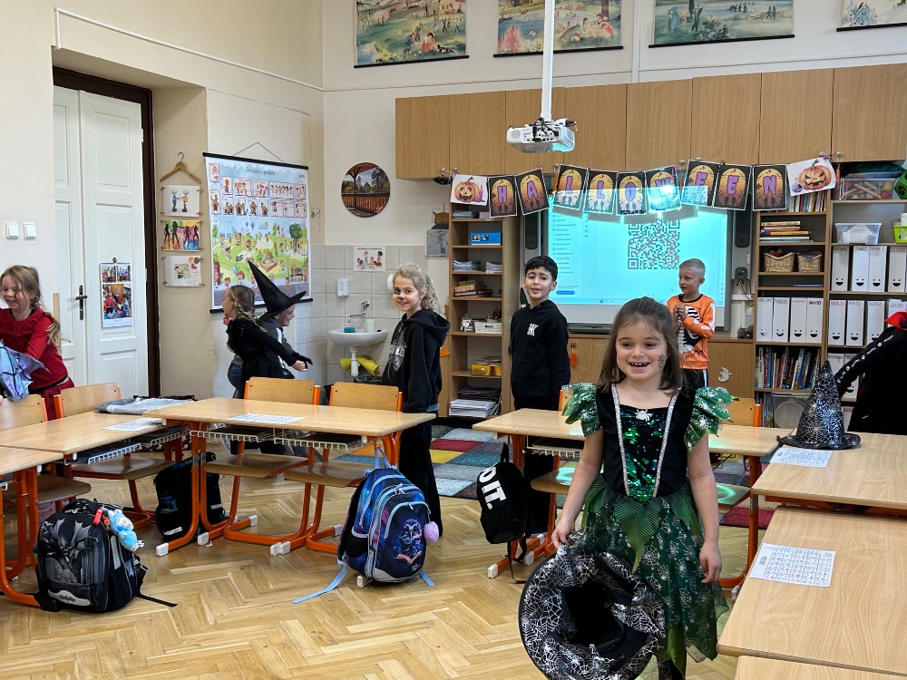 Prostřednictvím poutavého příběhu jsme si objasnili význam našeho komornějšího svátku. V rámci dalších aktivit jsme posuzovali shody a rozdíly mezi těmito dvěma svátky. Děti pak ve skupinkách nebo dvojicích řešily úkoly, doplňovaly chybějící informace. Vytvořily si jednoduchou skládačku pro zpestření, zahrály si hru na Kouzelnou dýni. Také si vyzkoušely práci s tablety, když hrály únikovku.