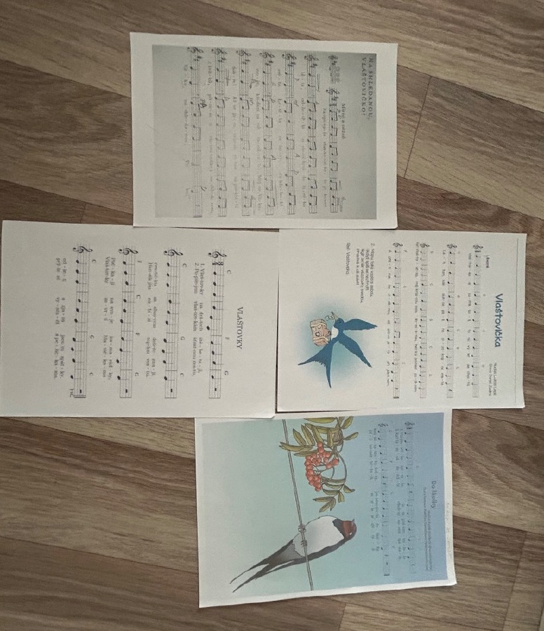 V hodinách výtvarné výchovy si vyzkoušeli různé techniky kreslení a malování tohoto tažného ptáčka. V hudební výchově jsme si o nich zazpívali několik písniček.