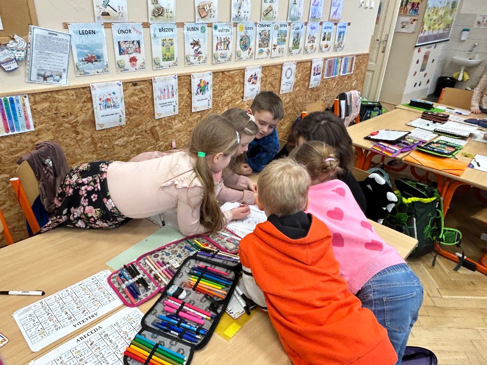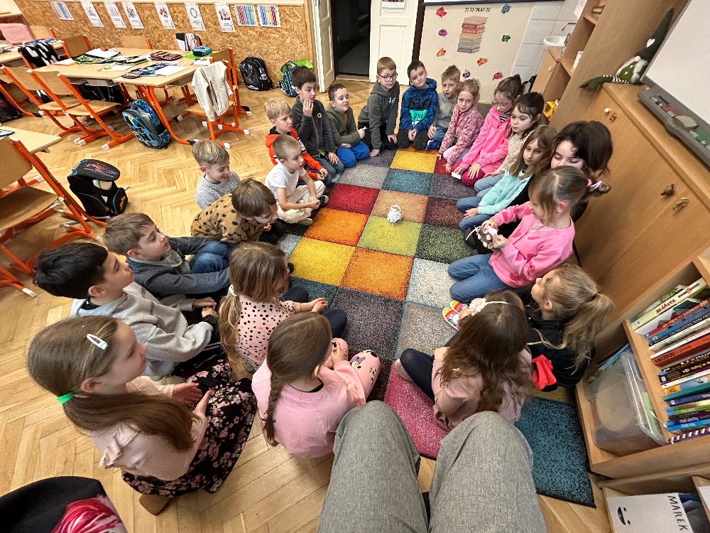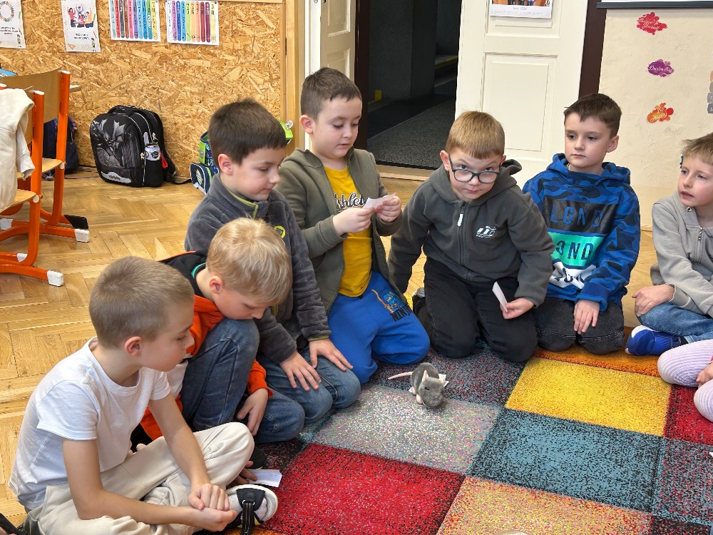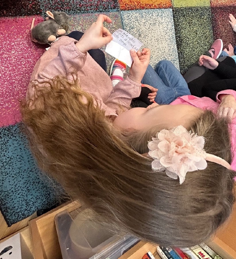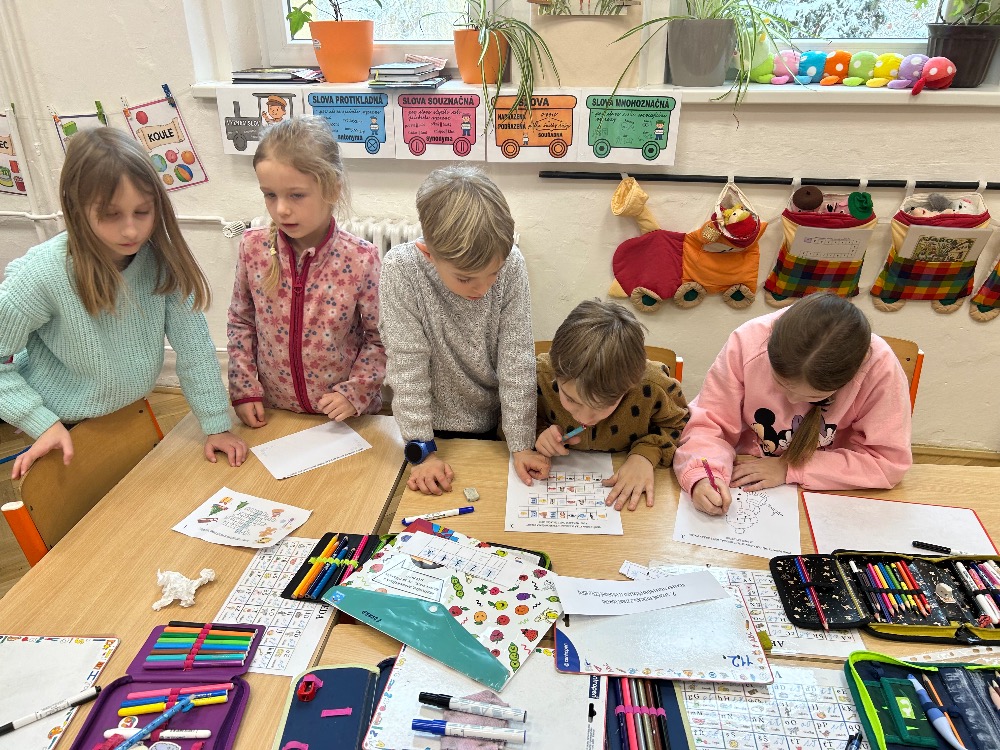 Děti si vyplnily sebehodnocení, napsaly vysvědčení i své třídní učitelce. Ve sklenici laskavosti jsme našli spoustu pozitivních vzkazů a hodnocení. Při jejich čtení nám pomohla myš Lenka (…myšlenka). Tyto hodiny jsme si samozřejmě osvěžili tancem a zpěvem. Také jsme si zahráli únikovou hru (děti pomáhaly Paní Zimě najít ztracený sníh, který jí ukradl obr z Krystalových hor). Celý den završilo předávání vysvědčení společně s osobním dopisem a drobných dárků. Protože bylo na co se těšit, bylo u nás ve třídě vysvětěšení.