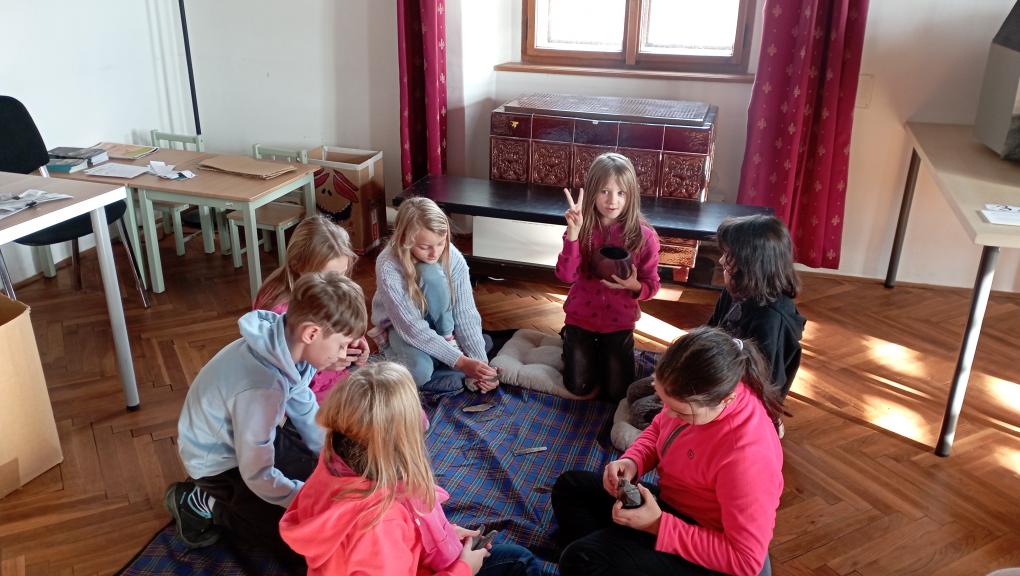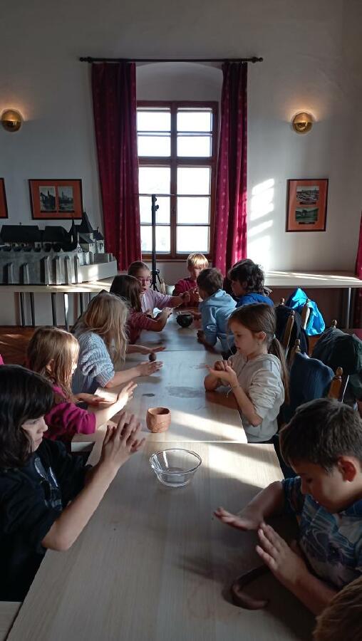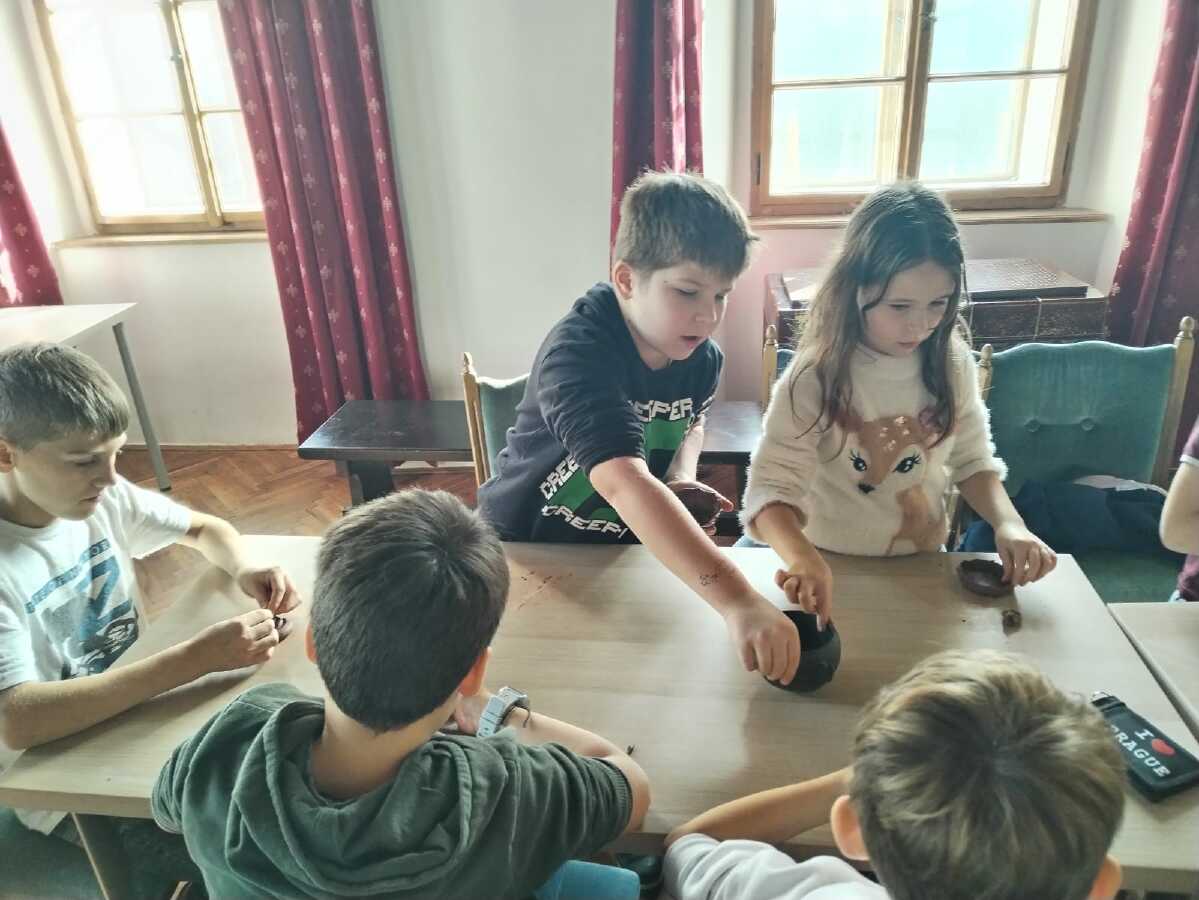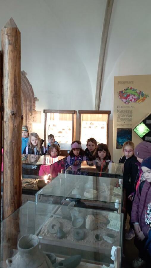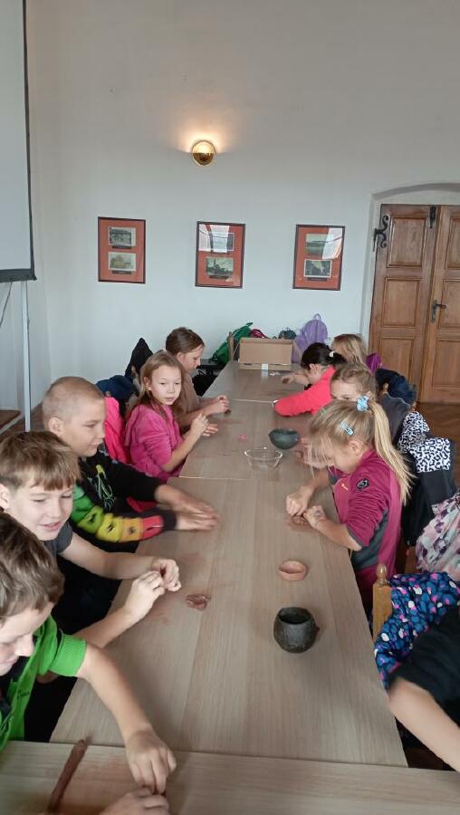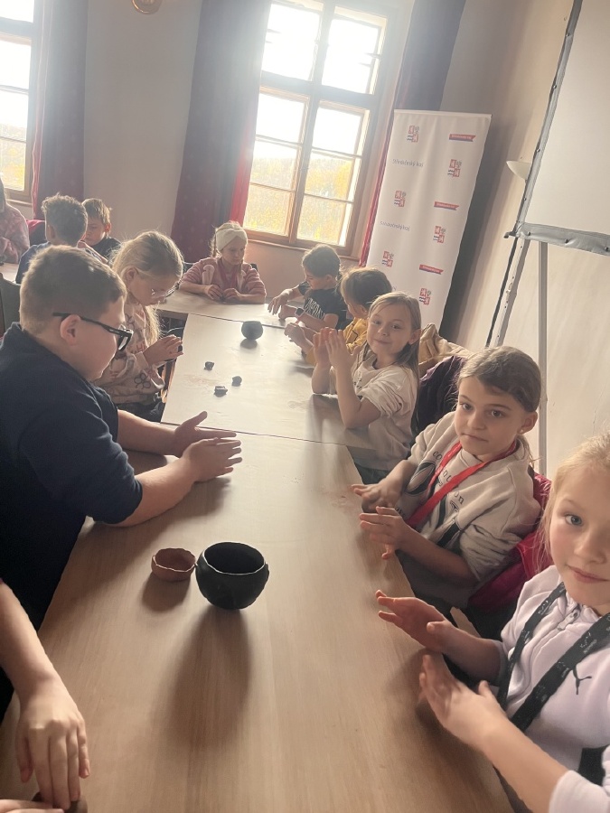 Třetí ročníky navštívily Hrádek - České muzeum stříbra, kde byl pro ně připraven program Dny v pravěku. Nejprve jsme se seznámili s pravěkými lidmi, jejich životem - co jedli, jak vařili, jaká zvířata chovali. Na stanovištích jsme si osahali nástroje, se kterými pracovali, lovili, sestavili jsme misku ze střepů a zkusili jsme drtit obilí. Porovnávali jsme minulost a současnost. Na závěr si každý z hlíny vytvaroval libovolný předmět pravěkého člověka.