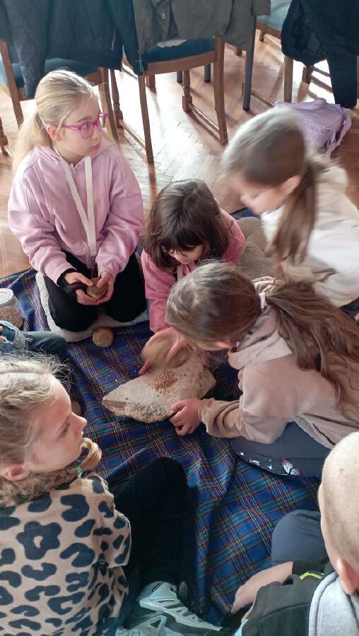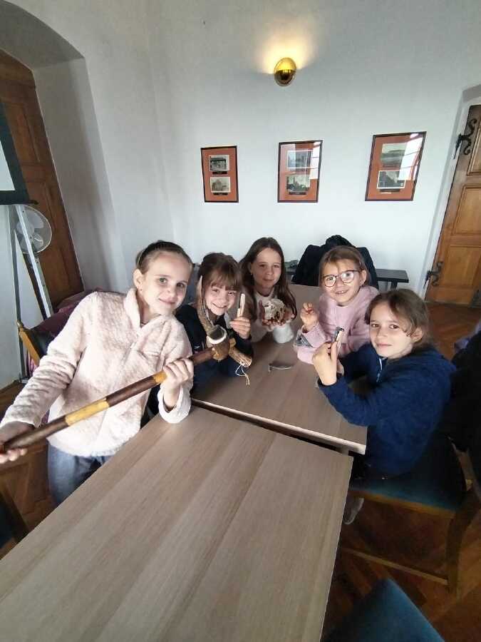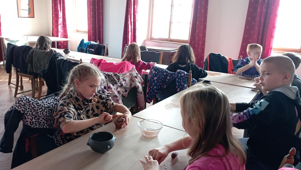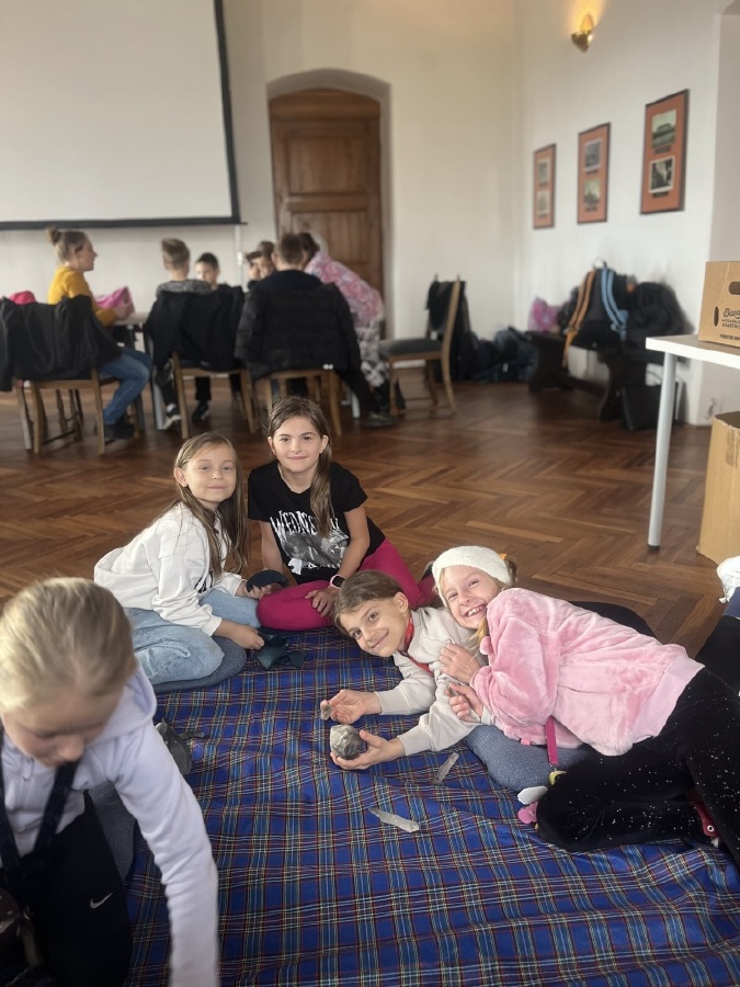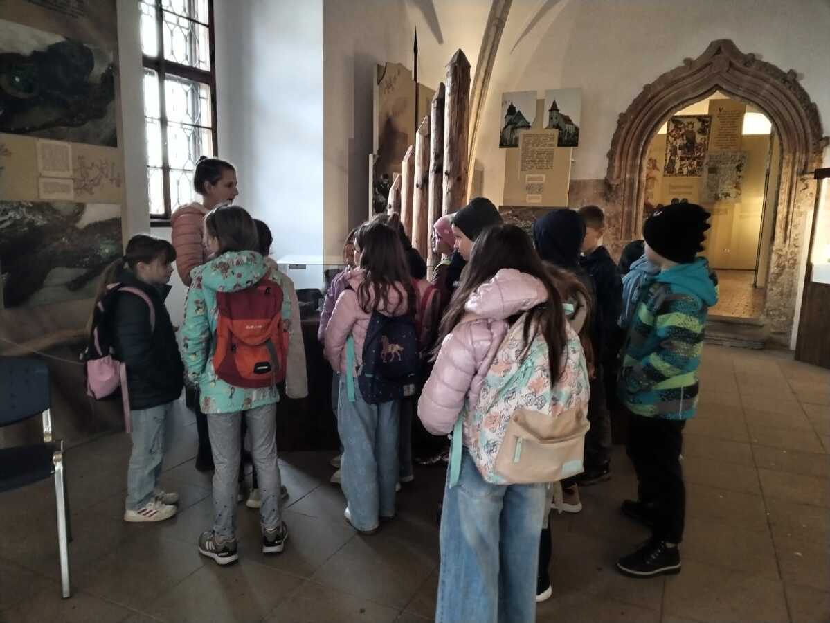 Třetí ročníky navštívily Hrádek - České muzeum stříbra, kde byl pro ně připraven program Dny v pravěku. Nejprve jsme se seznámili s pravěkými lidmi, jejich životem - co jedli, jak vařili, jaká zvířata chovali. Na stanovištích jsme si osahali nástroje, se kterými pracovali, lovili, sestavili jsme misku ze střepů a zkusili jsme drtit obilí. Porovnávali jsme minulost a současnost. Na závěr si každý z hlíny vytvaroval libovolný předmět pravěkého člověka.