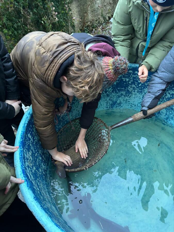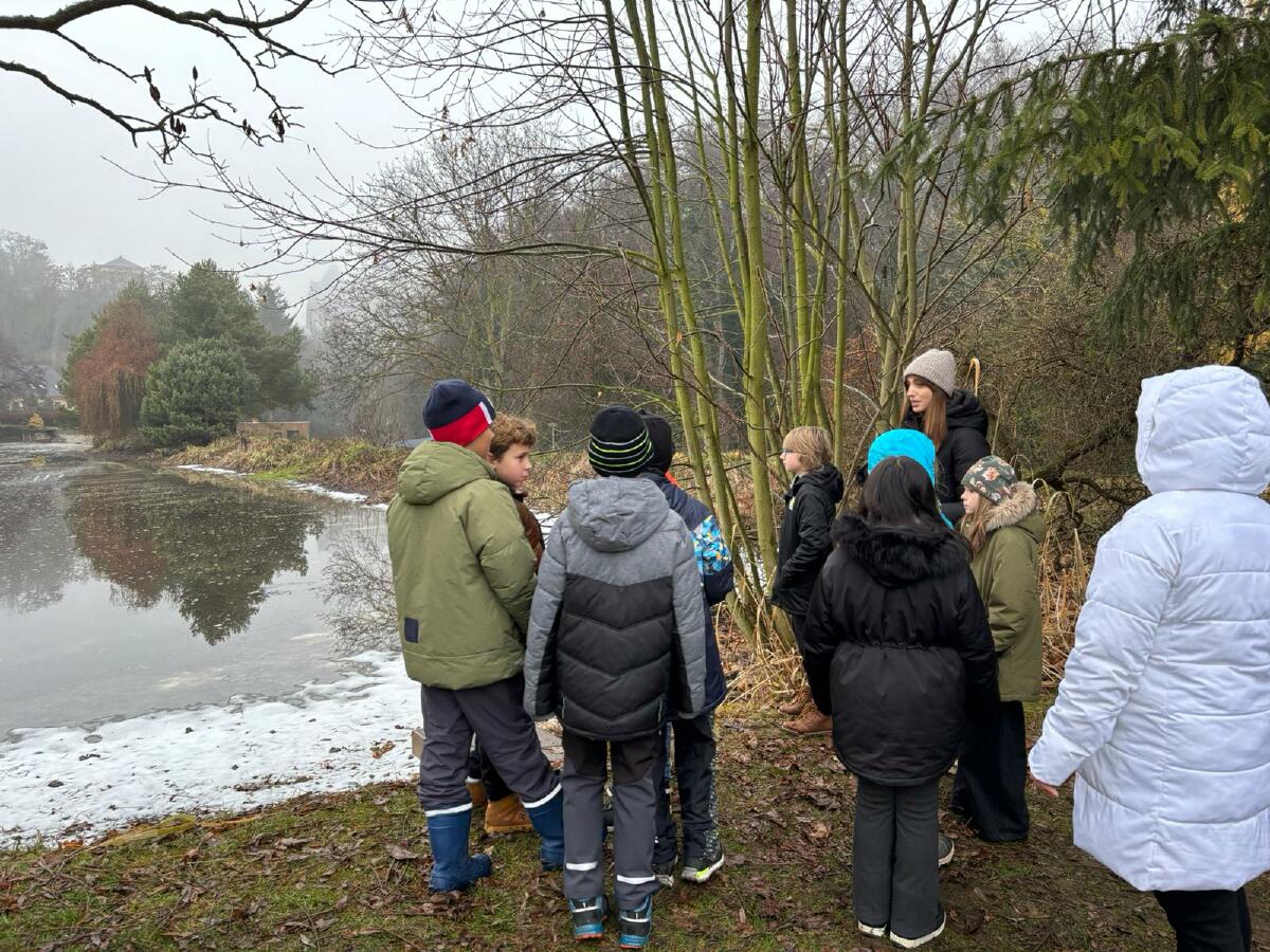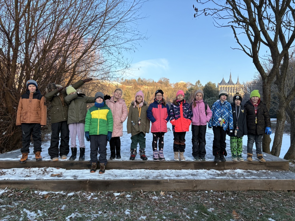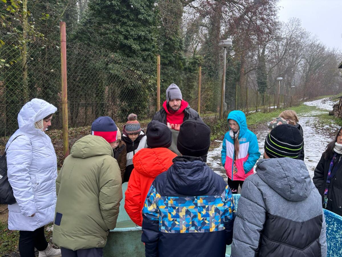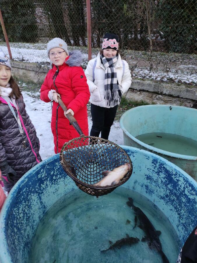Čtvrťáci se nezalekli mrazivého počasí a s nadšením vyrazili na průzkum života rybníku v rodinném rybářství Haering.