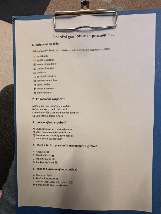 Během programu si děti objasnily, co jsou peníze, odkud se berou a jak s nimi správně zacházet. Společně přemýšlely nad tím, jaký je rozdíl mezi potřebami a přáními a proč je důležité umět rozlišovat mezi tím, co skutečně potřebujeme, a tím, co si jen přejeme.