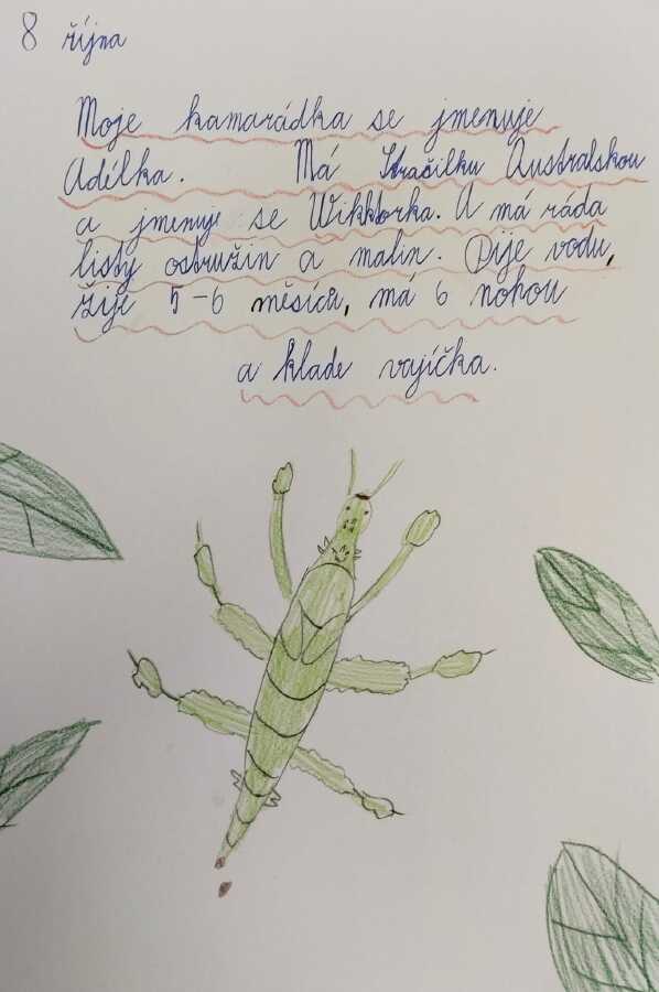 Dokonce jsme někteří od Adélky Šimůnkové dostali vajíčka strašilek australských, která teď budeme pár týdnů pozorovat a až se vylíhnou, budou z nich třídní maskoti.