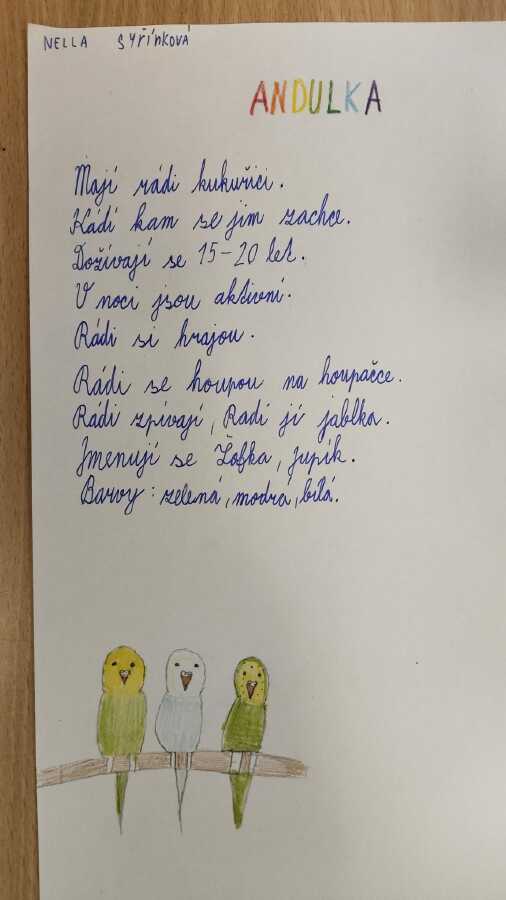 Jako každoročně jsme i letos oslavili Světový den zvířat s našimi milými mazlíčky. Vyprávěli jsme si, jak se o ně staráme, psali jsme sloh o mazlíčkovi spolužáka i anglický popis. Dále žáci vymýšleli přídavná jména, jaký může mazlíček být a poté i slovní úlohy o nich.