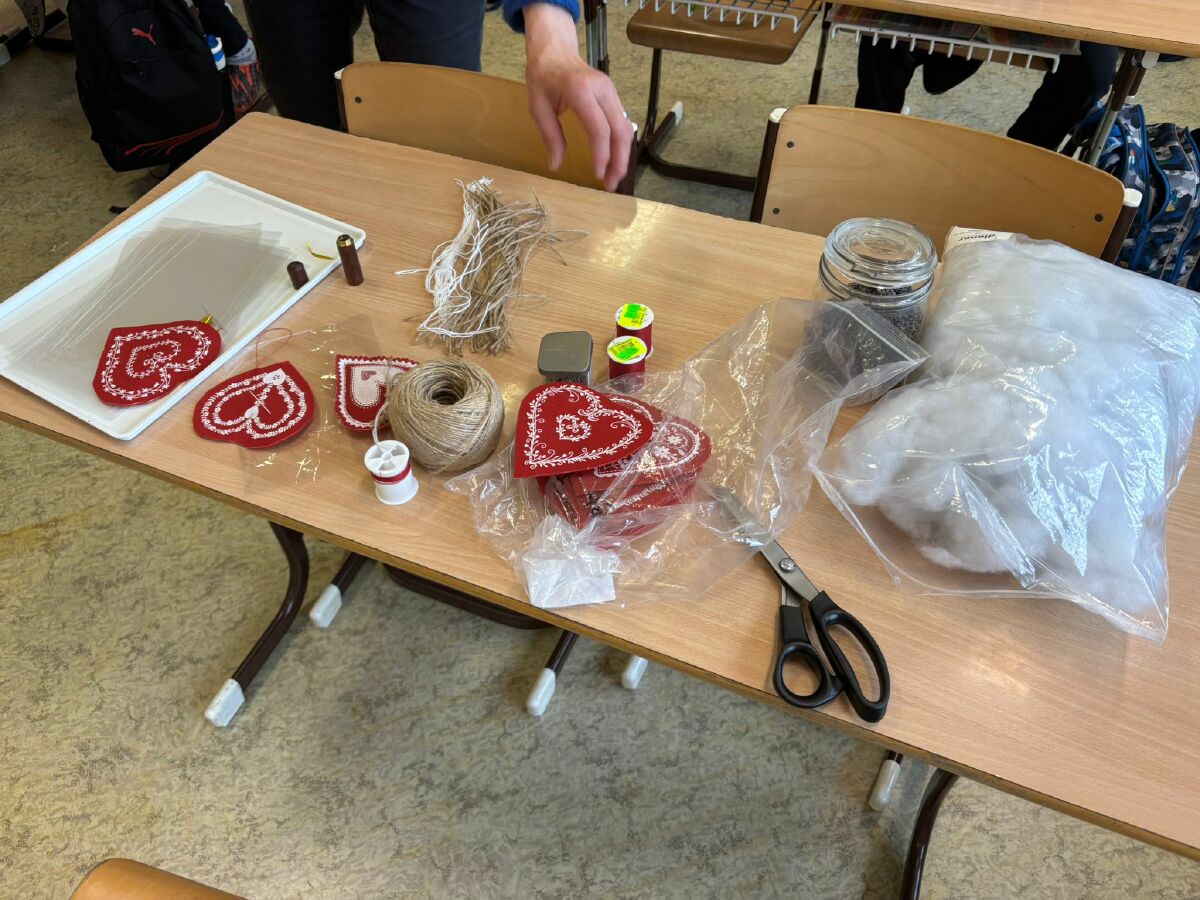 Žáci 4. ročníku se postupně zúčastnili řemeslné dílny spolku Pod horami, kde si připravili dárek ke Dni matek. Z polotovarů si vytvářeli folklórní srdíčka z bavlny a plsti. Vyzkoušeli si základní šicí techniku - přední steh, srdíčka vycpali vatelínem a provoněli sušenou levandulí. Na závěr povedené výrobky doplnili mašličkou, poutkem na zavěšení a svá srdíčka pečlivě dárkově zabalili. Setkání s velmi šikovnou paní lektorkou přineslo dětem radost z tvoření i novou zkušenost s rukodělnou činností.