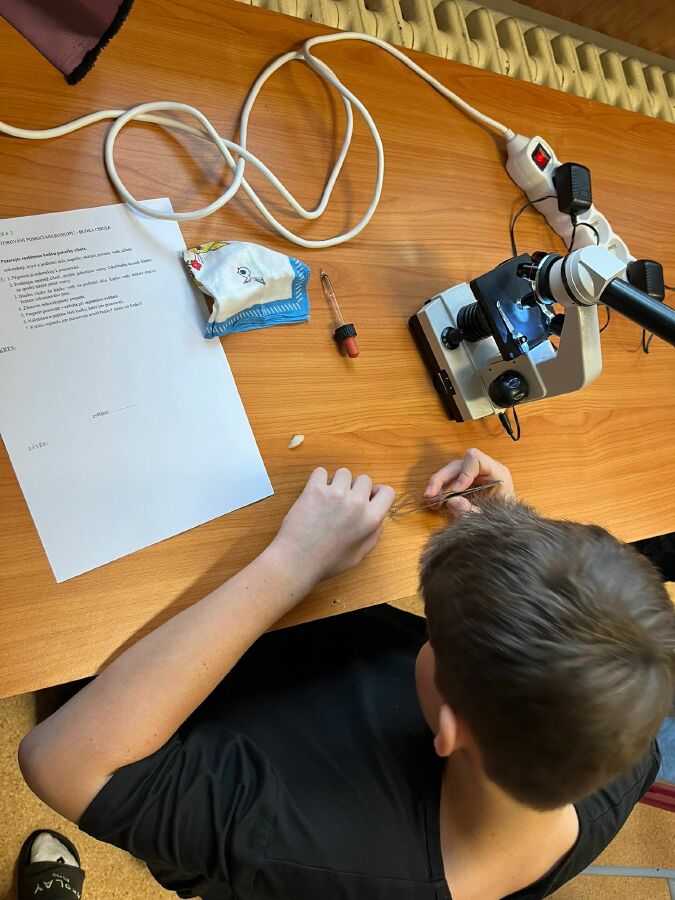 V posledních několika hodinách přírodopisu si žáci šestých ročníků mohli ověřit během laboratorních prací své teoretické znalosti z přírodopisu a stát se tak na okamžik přírodovědcem badatelem. Nejdříve pozorovali lupou části hmyzu. Hned poté si zhotovili vlastní mikroskopický preparát a pak už mohli v mikroskopu pozorovat buňky cibule. Jako správní vědci o svém pozorování vypracovali vlastní zápis v podobě laboratorního protokolu. Žáci si svá pozorování velice užili a už se těší na další „laborky“.