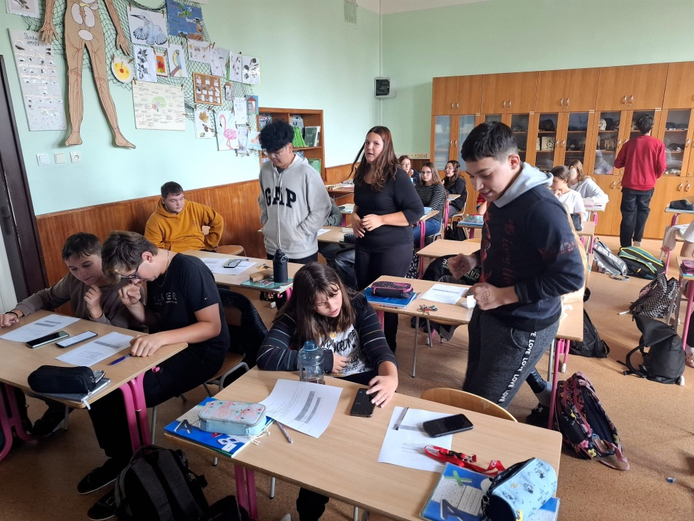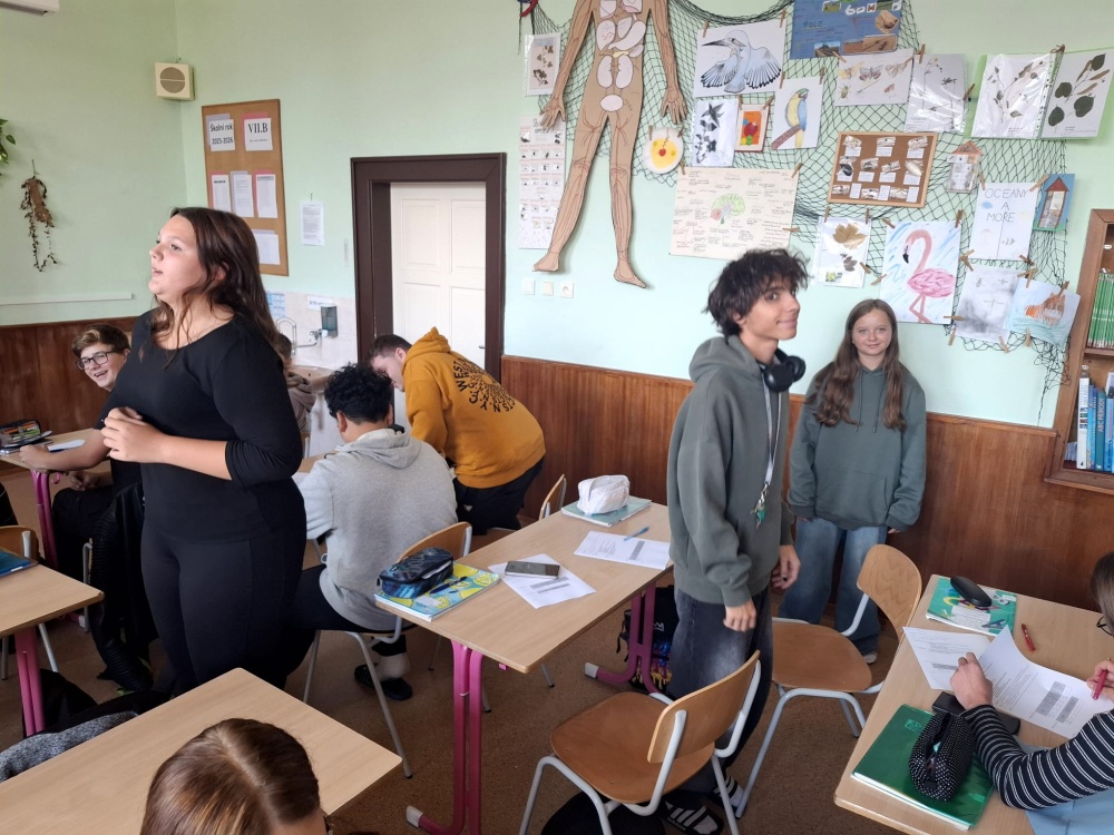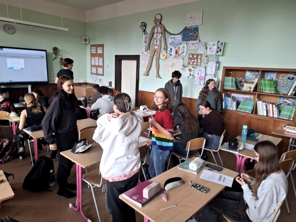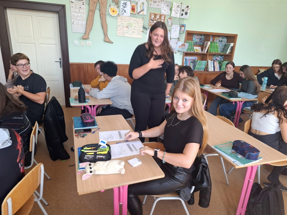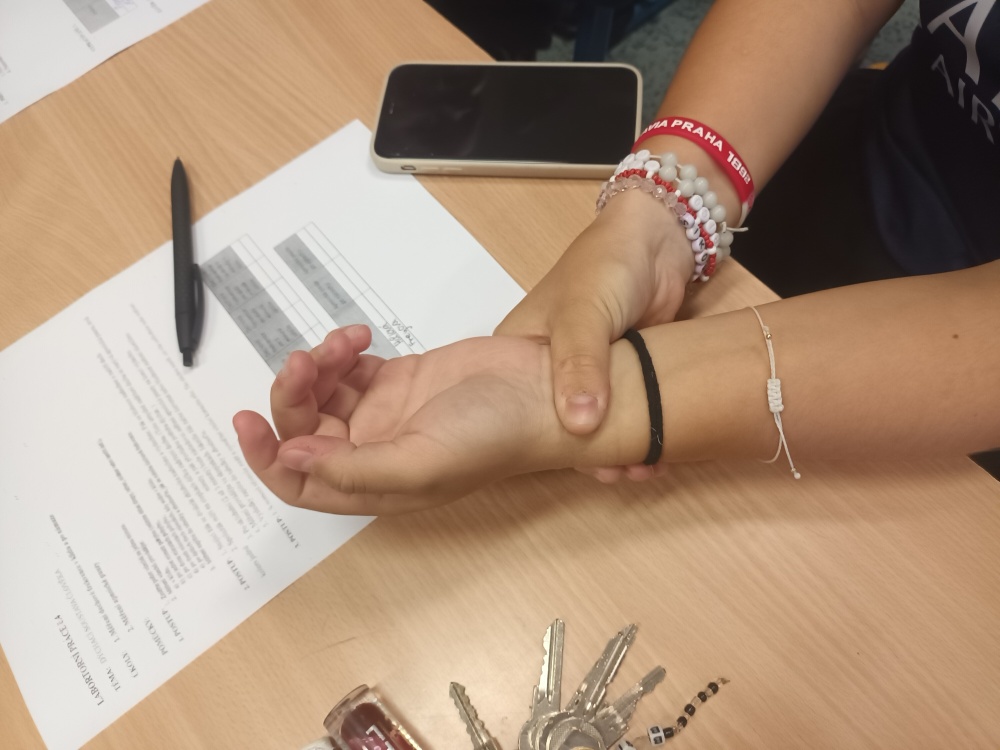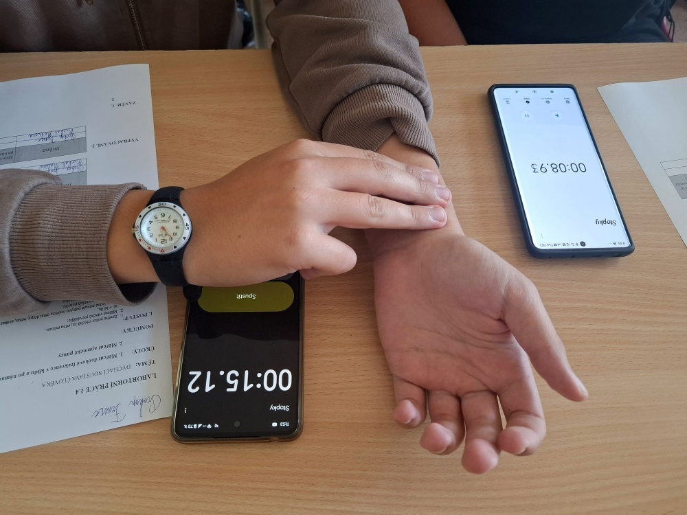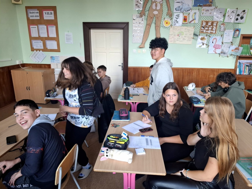 Žáci devátých ročníků se v hodině přírodopisu věnovali laboratorní práci zaměřené na lidské tělo. Prakticky si zopakovali učivo 8. ročníku o dýchací a oběhové soustavě. Pomocí měření dechové a tepové frekvence si ověřili, jak funguje lidský organismus v klidovém stavu i po fyzické námaze. Zkoumali, jaký vliv má pohyb na činnost srdce a plic, a porovnávali výsledky mezi jednotlivými spolužáky. Práce probíhala ve dvojicích a žáci při ní prokázali nejen znalosti, ale i týmovou spolupráci. Výsledky z měření následně vyhodnotili a diskutovali o nich.