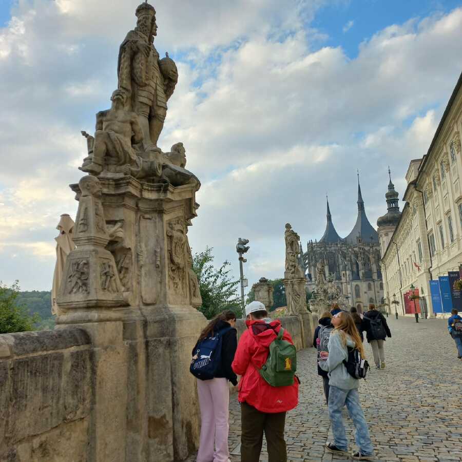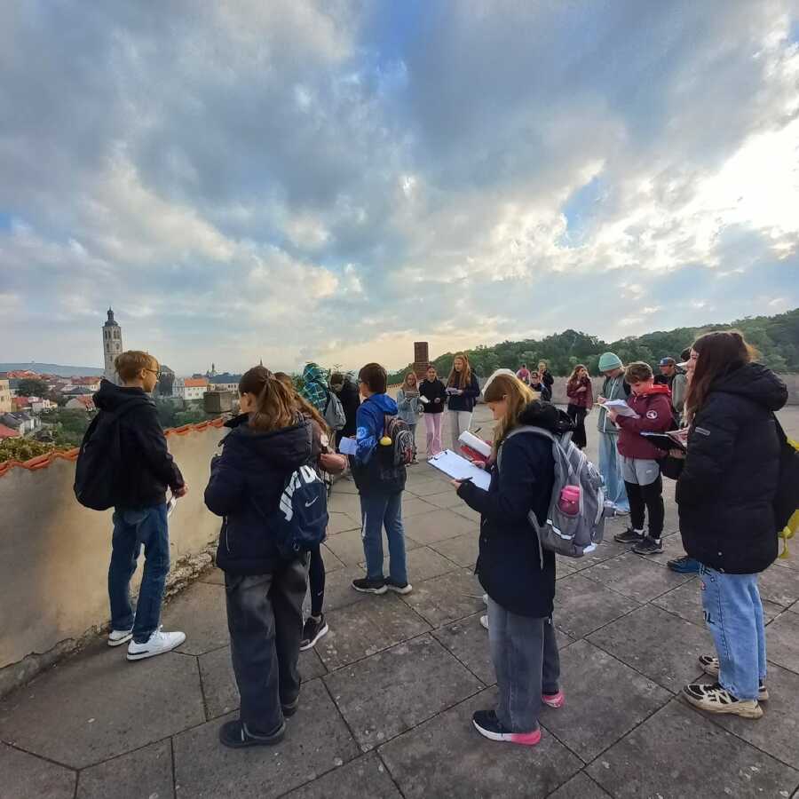 Již tradičně v tomto období se žáci celého 2. stupně vydávají do ulic svého krásného města, aby se o něm dozvěděli spoustu zajímavostí. Nejinak tomu bylo i letos. Za poměrně chladného rána se jednotlivé ročníky ubíraly po předem naplánované trase. Šestkám patřila Kutná Hora gotická, sedmičkám převážně ta barokní. Osmičky musely zvládnout trasu nejdelší, a to do Sedlce a Malína. Devítky zkoumaly nejenom literární osobnosti K. Hory.