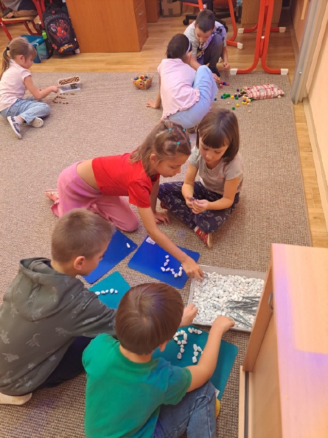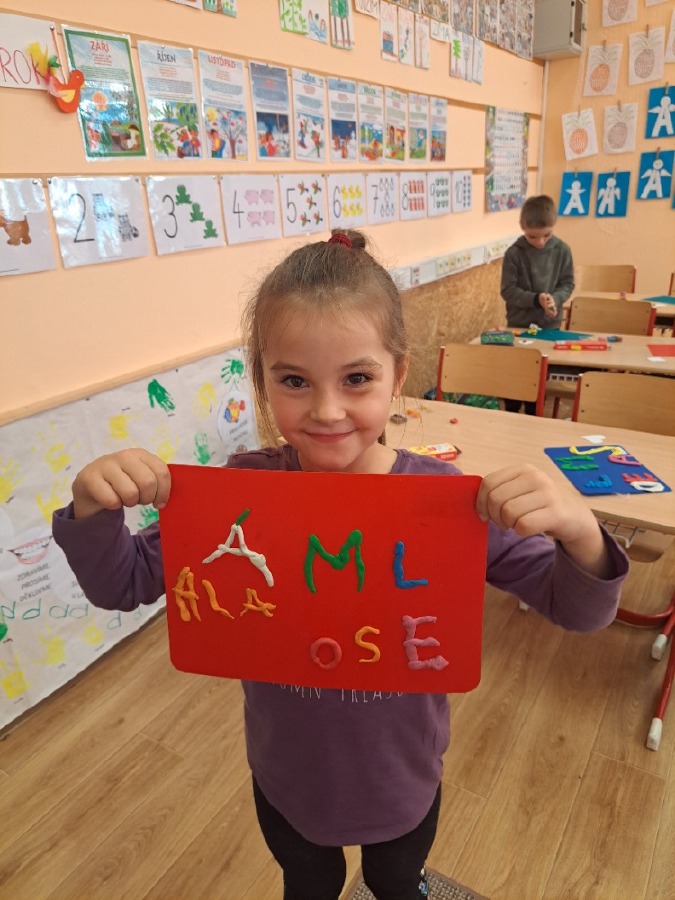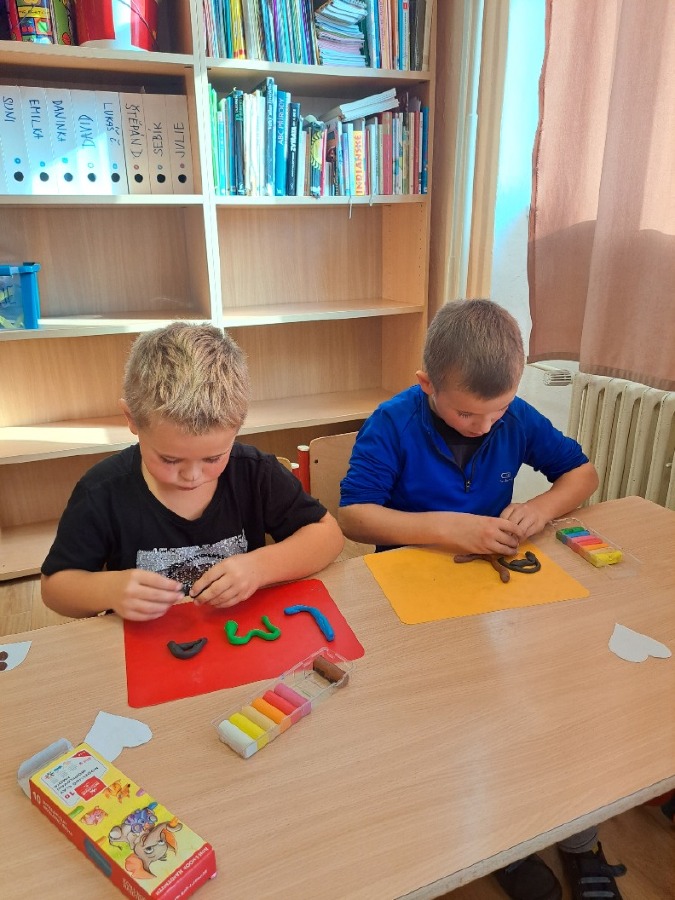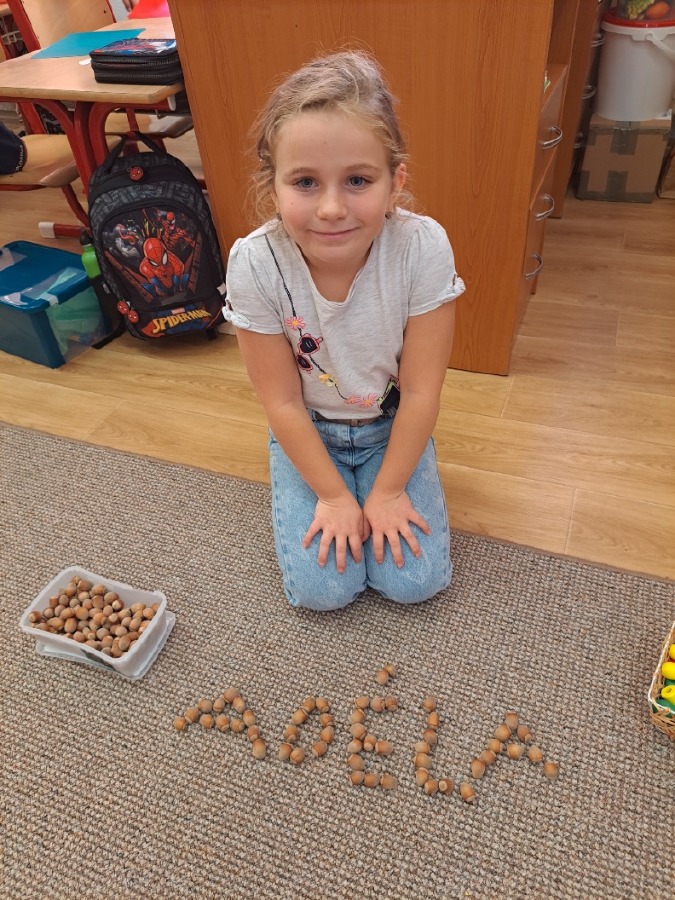V pátek 18.10. jsme spojili výuku českého jazyka a pracovních činností. Procvičovali jsme jemnou motoriku a šikovnost našich ručiček různými motorickými činnostmi, prací s různým materiálem a zároveň jsme si zopakovali písmenka. Byla to skvělá zábava.