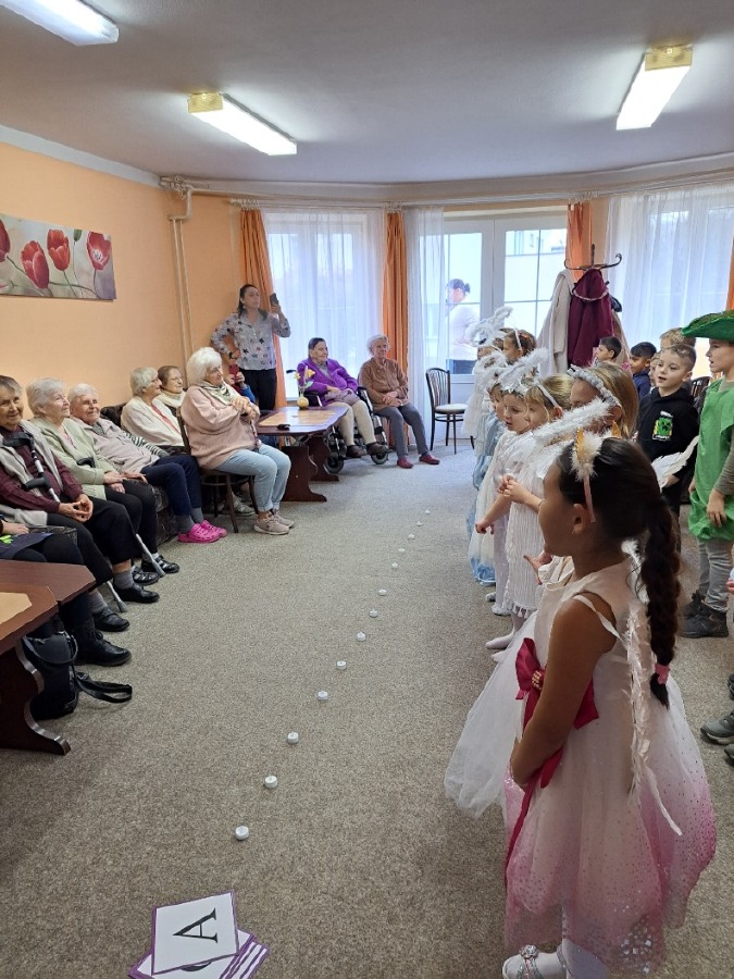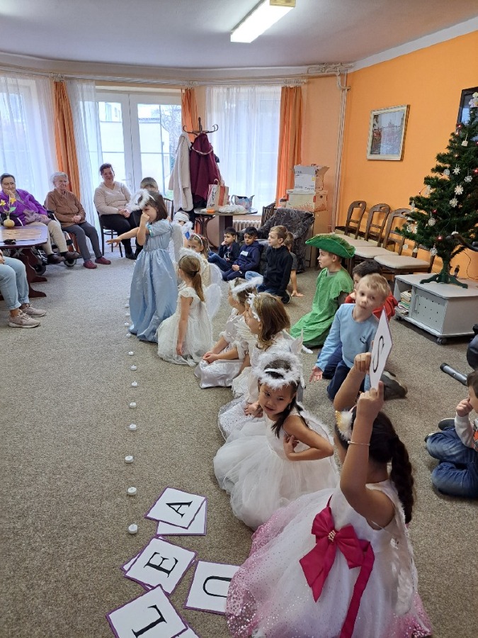 V úterý 17.12. přinesli prvňáci do domu s pečovatelskou službou seniorům radost svým vystoupením i drobnými dárečky.