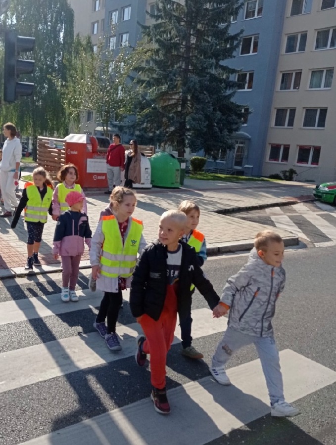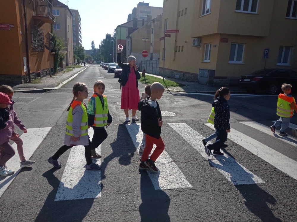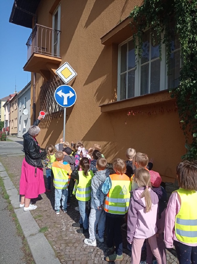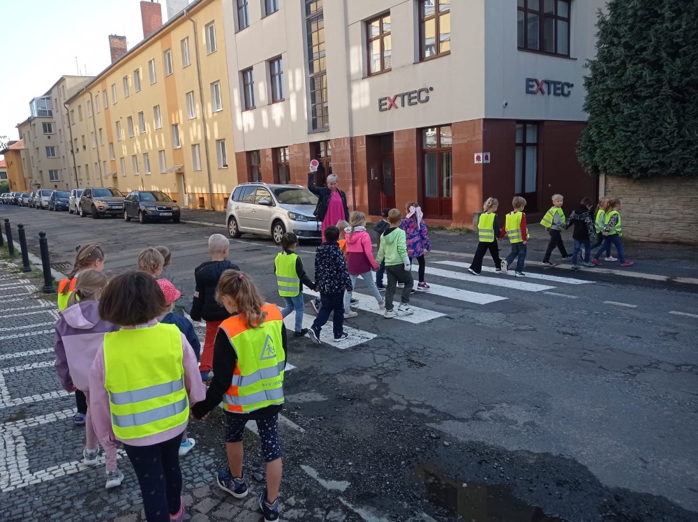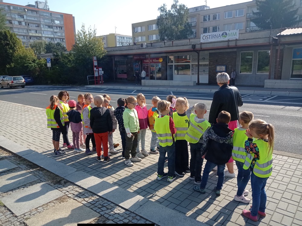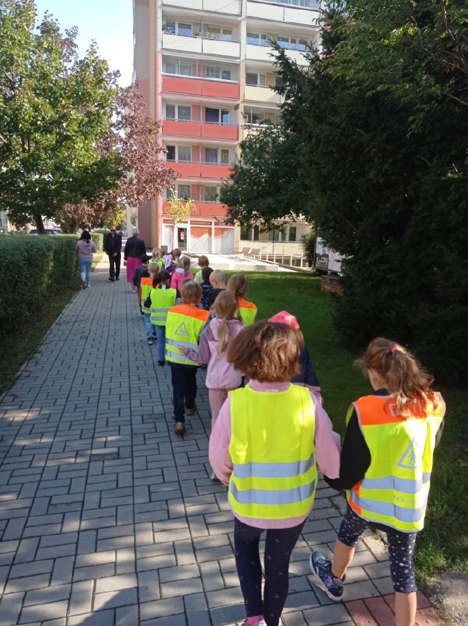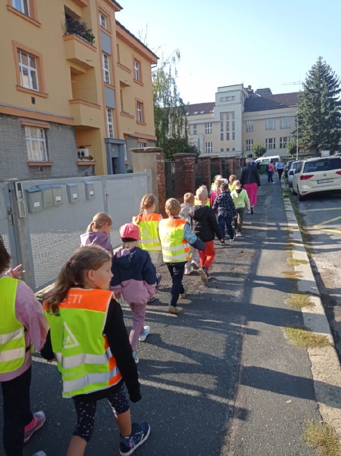 Ve středu se malí prvňáčci vydali v rámci prvouky na průzkum nejbližšího okolí školy. Cestou jsme si upevňovali pravidla silničního provozu pro chodce, poznávali dopravní značky, prohlédli budovy institucí a služeb, jež jsou na dosah naší škole. Ve výtvarné výchově pak děti zakreslily svou cestu po okolí školy jako součást projektu Pěšky do školy.