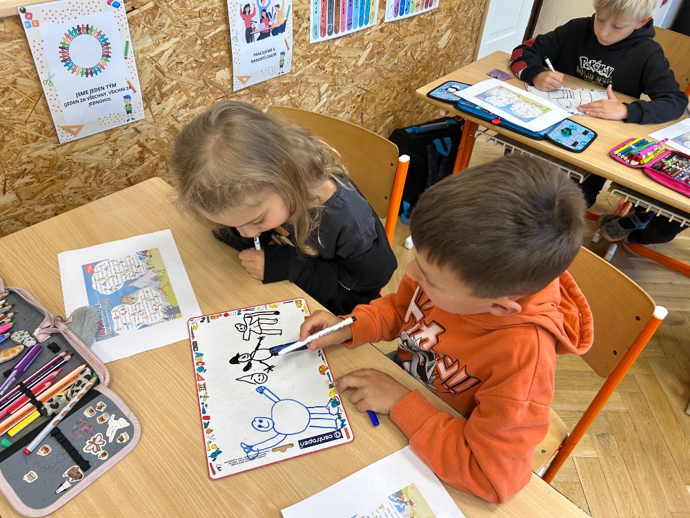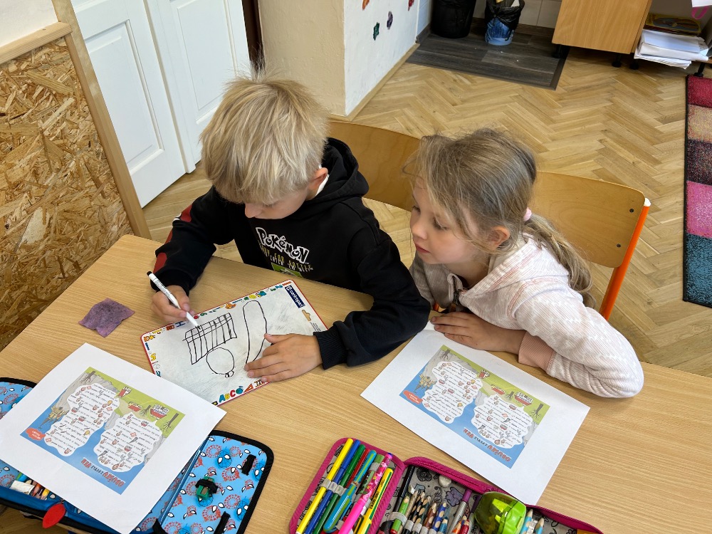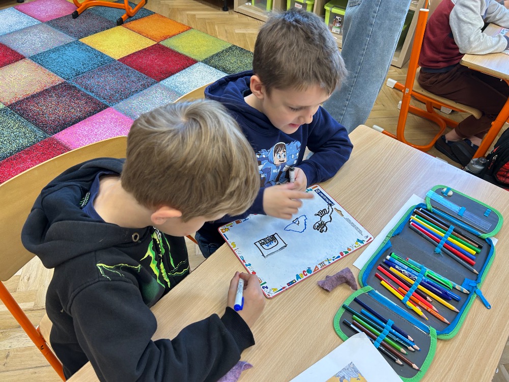 Ve čtvrtek děti z 1.B absolvovaly předposlední kolo jejich celoročního putování napříč pohádkovým světem. Protože už všichni čteme, úkol byl jasný. Každá dvojice četla stejnou pohádku zpracovanou tzv. malovaným čtením.