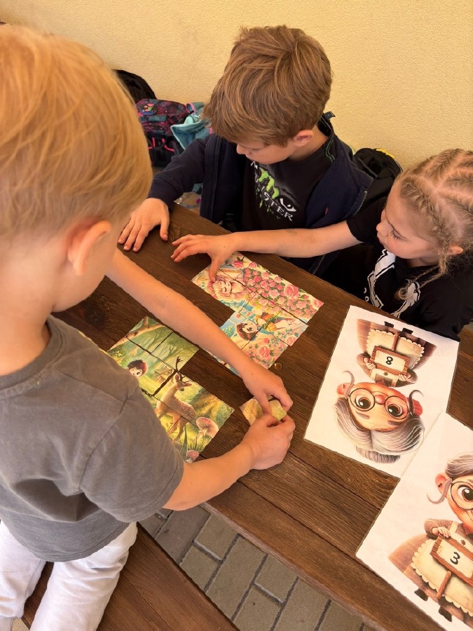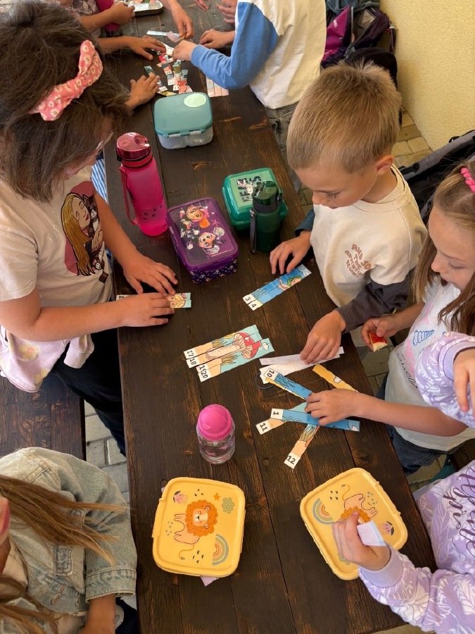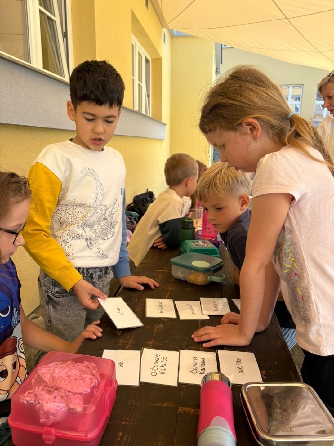 Pak na nás v přírodní učebně čekaly další aktivity k tématu: počítali jsme a následně skládali puzzle, hledali a přiřazovali bytosti z říše fantazie k názvům příběhů, hledali dvojice patřící k sobě pomocí chytrého pexesa. Den jsme si užili a těšíme se do 2.ročníku, tím nás budou provázet 4 známé postavičky z naší literatury.