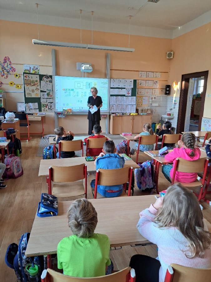 Prvňáci zahájili celoroční projekt Za písmenky do knihovny. Každý druhý měsíc budou plnit čtenářské úkoly, seznámí se s prostředím knihovny a na konci školního roku na ně čeká krásné překvapení. V říjnu nás navštívila paní knihovnice, aby nám představila knihovnické pohádky a zkontrolovala plnění zadaných úkolů.