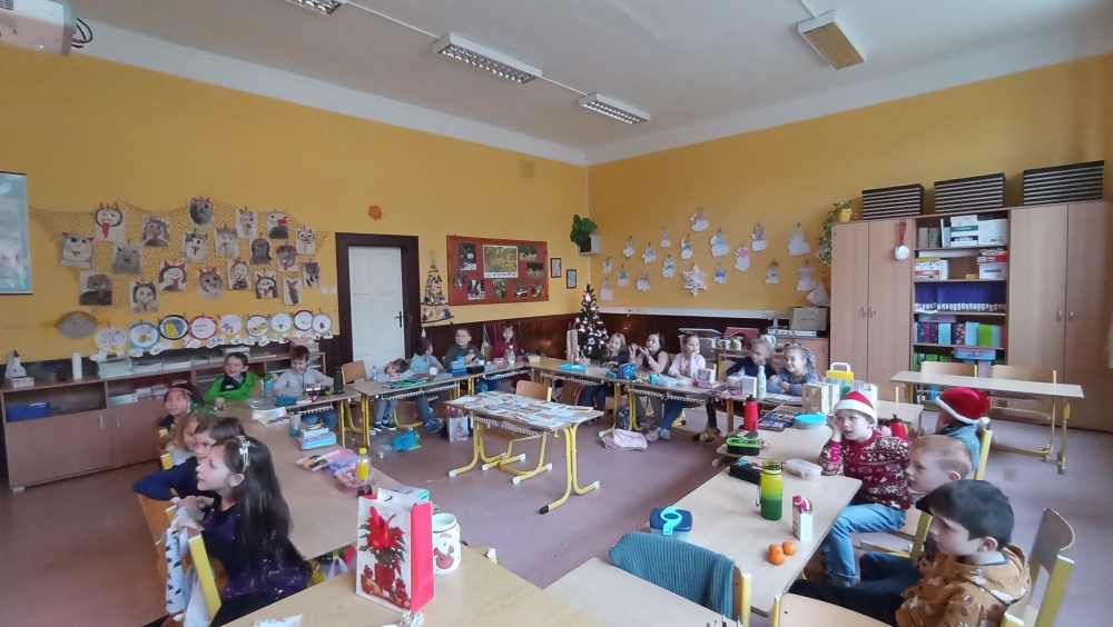 Poslední školní den roku 2024 jsme zakončili třídní vánoční besídkou, v jejímž závěru nás navštívil i školní Ježíšek…
