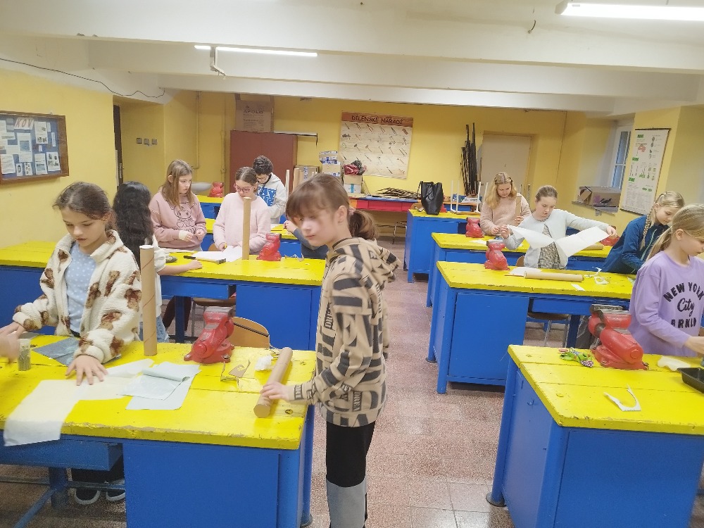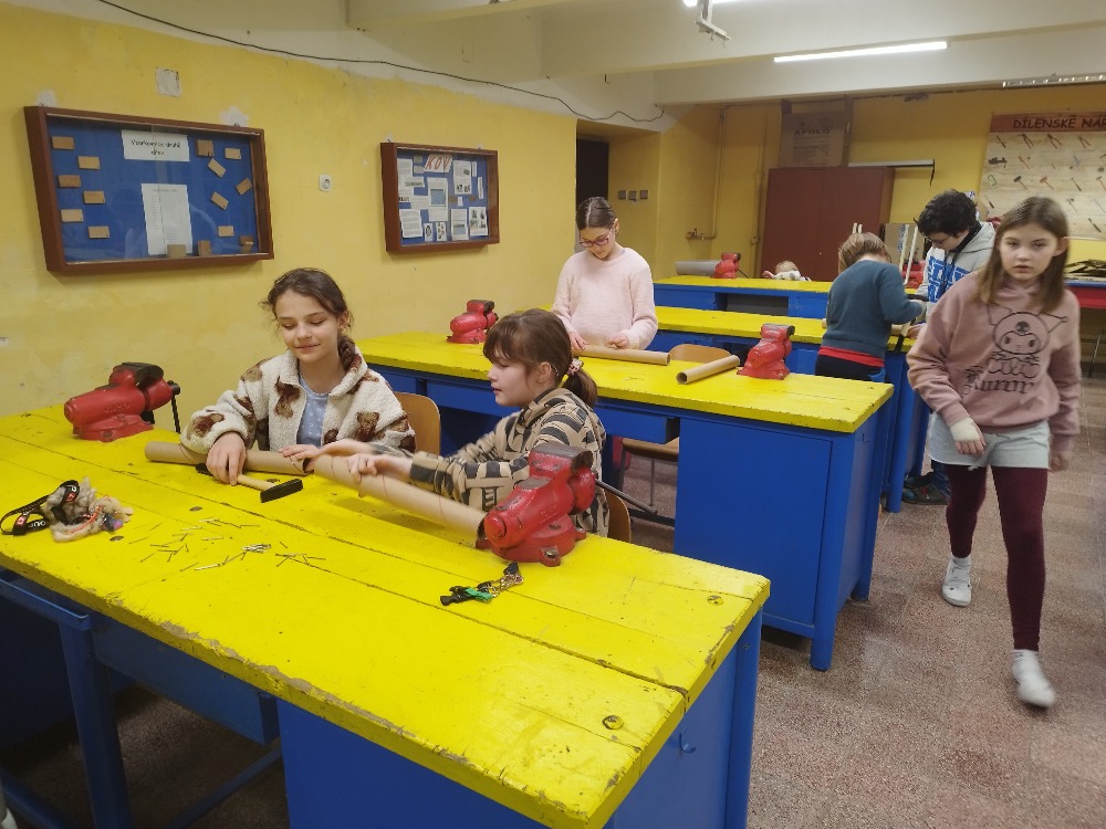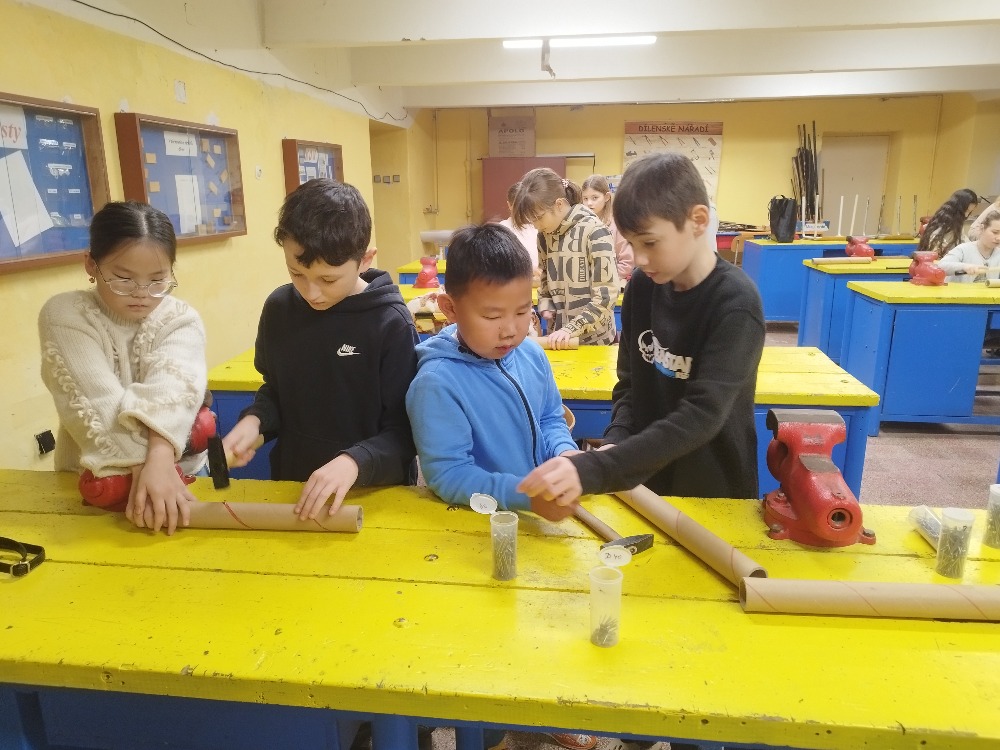 V rámci kreativní dílny si žáci 4. třídy vyzkoušeli výrobu dešťové hole, tradičního hudebního nástroje, který pocházel z kultur původních obyvatel jižní Ameriky. Tento nástroj napodobuje zvuk deště a je využíván při rituálech i relaxaci.