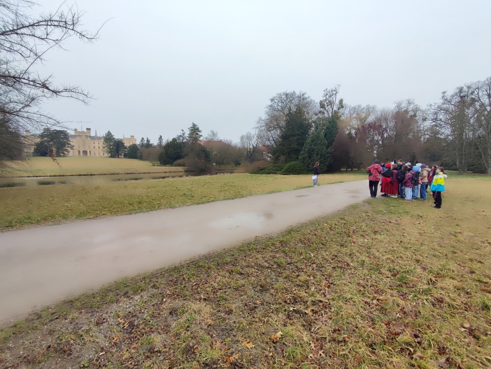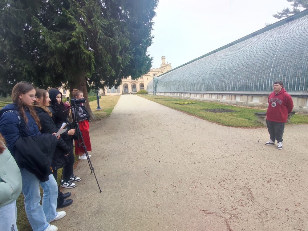 V rámci projektu UNESCO 30 vyrazila 8.B na dva dny do Lednicko Valtického areálu. Zde jsme navštívili zahrady Lednického zámku, díky úžasné a místo milující průvodkyni zažili krásnou prohlídku romantického zámku. Krátce zavítali do Rakouska, večer si prošli nočními Valticemi, v nichž druhý den navštívili zámek spolu s jeho nádhernou kaplí a původně zrekonstruovaným barokním divadlem. Cestou zpět neopomněli se ještě zastavit aspoň na dvou místech úžasného areálu, když navštívili Dianin chrám a Chrám Tří grácií. Během toho tvořili filmovou přípravu pro závěrečnou část školního projektu. To vše zvládli i přesto, že na rozdíl od zbytku republiky, oni měli to štěstí, že jim celé dva dny strávené v malebném koutů jižní Moravy víceméně propršely.