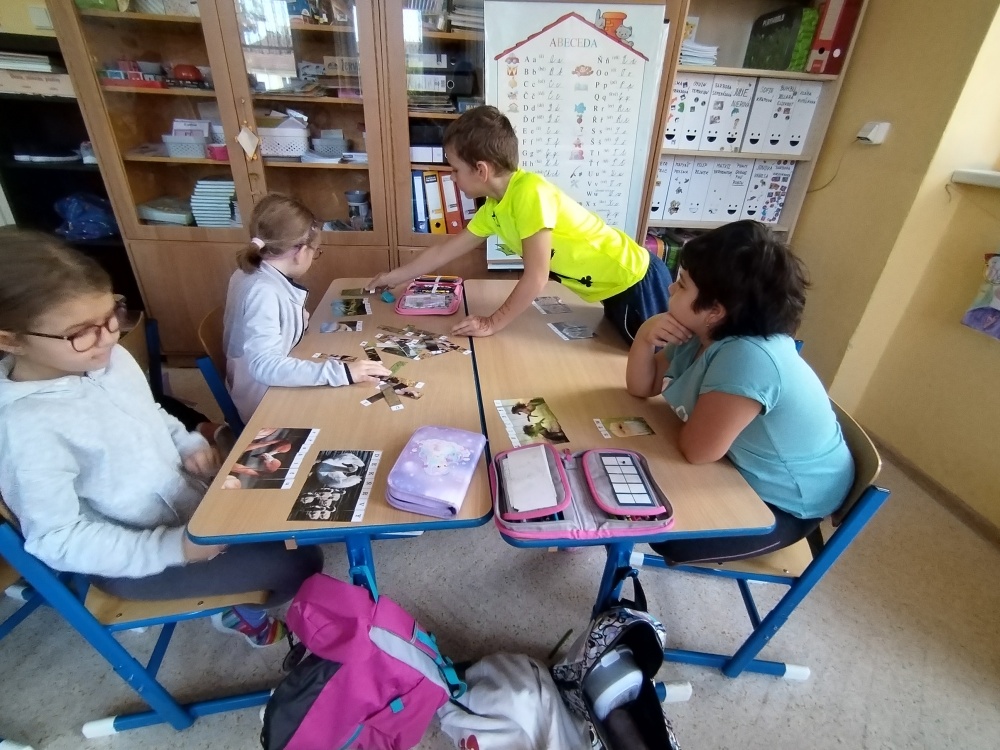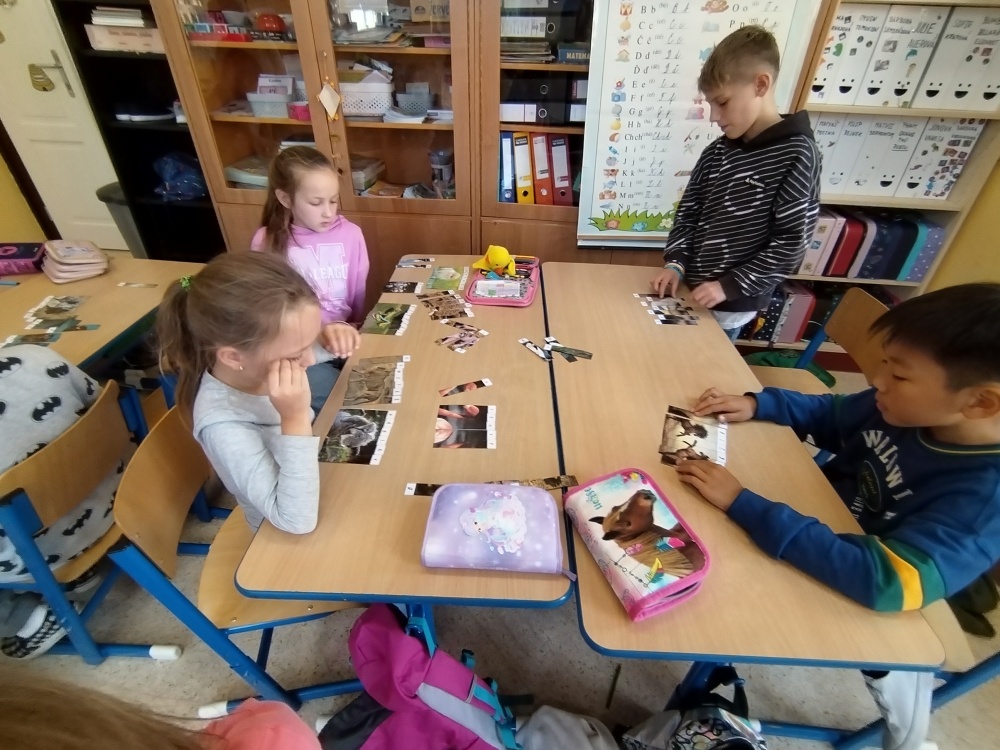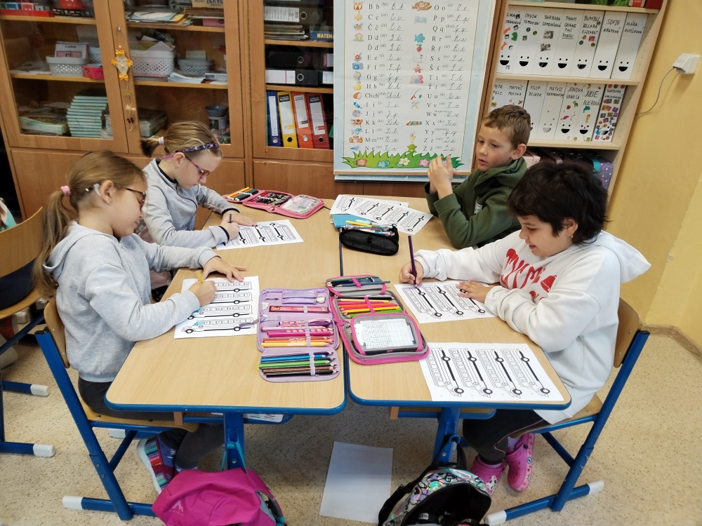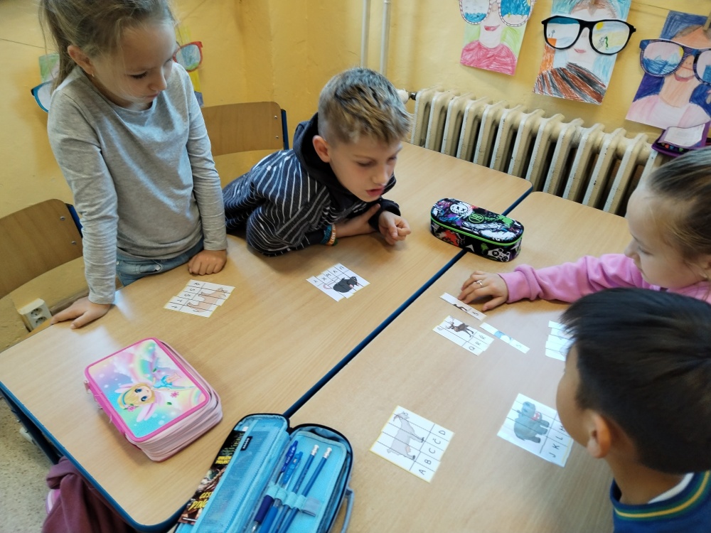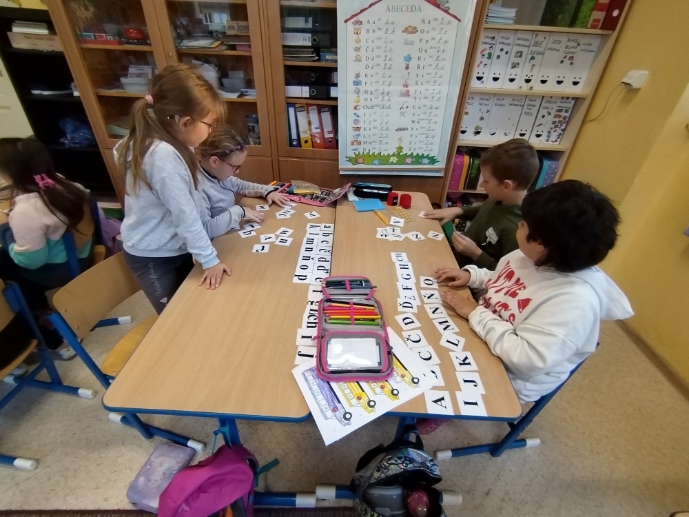 Ve čtvrtek 24. 10. proběhl v naší třídě projektový den, který byl zaměřený na abecedu. Po celou dobu projektové výuky jsme pracovali nejen ve dvojicích, ale i ve skupinách. Žáci řadili písmena ve správném pořadí a také jsme doplňovali chybějící písmena, která jsme zkoušeli psát ve tvarech tiskacích i psacích. Také jsme skládali rozstříhané obrázky zvířat. Pomocí kartiček a obrázků jsme si procvičili řadit podle abecedy i celá slova. Dále jsme si zábavnou formou trénovali logické myšlení a prostorovou orientaci a naprogramovali si směr a trasu do určitého cíle pomocí Blue – Botů. Nakonec jsme výtvarně ztvárnili všechna písmena abecedy. Projektový den jsme si velice užili a už se těšíme na další.