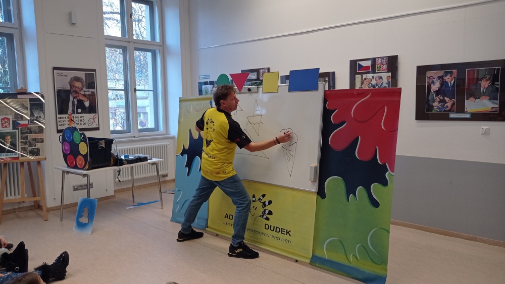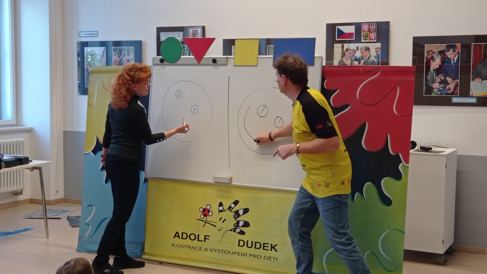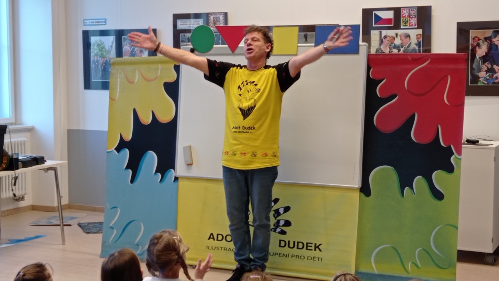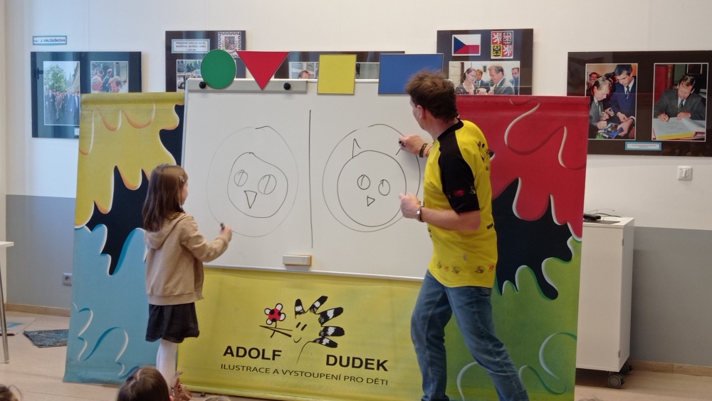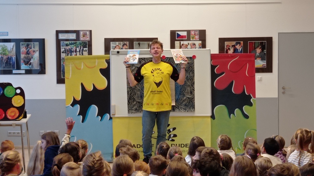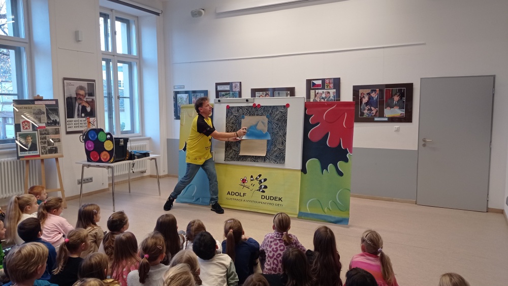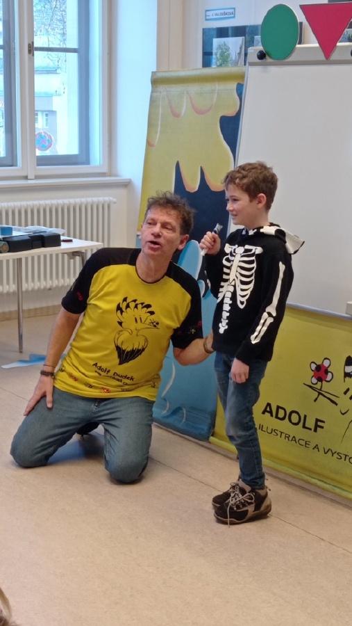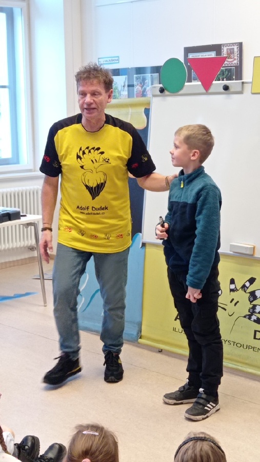 Žáci 2. a 3. ročníků navštívili místní knihovnu, kde se seznámili s ilustrátorem dětských knížek, Adolfem Dudkem. Ten je provedl poutavým a vtipným vystoupením svojí tvorbou.