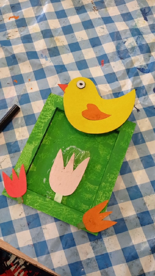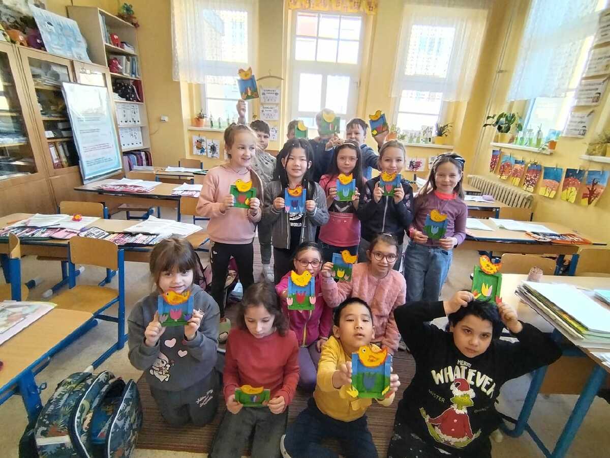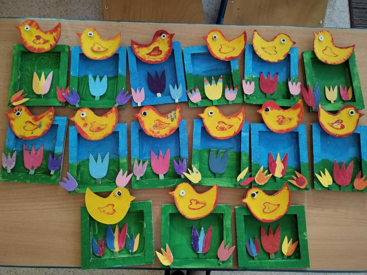Žáci druhých ročníků přivítali jaro výrobou originální jarní dekorace - obrázku s motivem ptáčka.