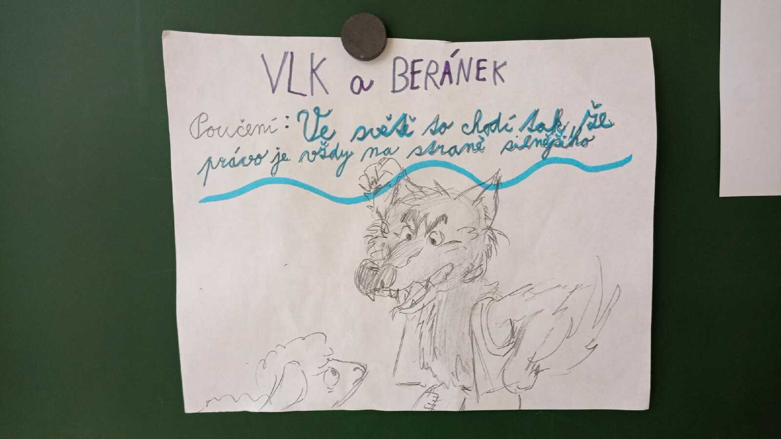 V rámci výuky literatury si žáci 7. C vybrali bajky od Ezopa, La Fontaine a Krylova. Poté se zamysleli nad jejich poselstvím a morálním ponaučením.