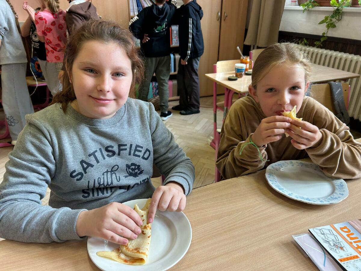 V naší třídě 4.B jsme si nedávno uspořádali Palačinkový den, který se stal nejen skvělou příležitostí pro přípravu chutného jídla, ale také zábavným a poučným zážitkem. Cílem bylo nejen usmažit palačinky, ale také rozvíjet jazykové dovednosti našich dětí.