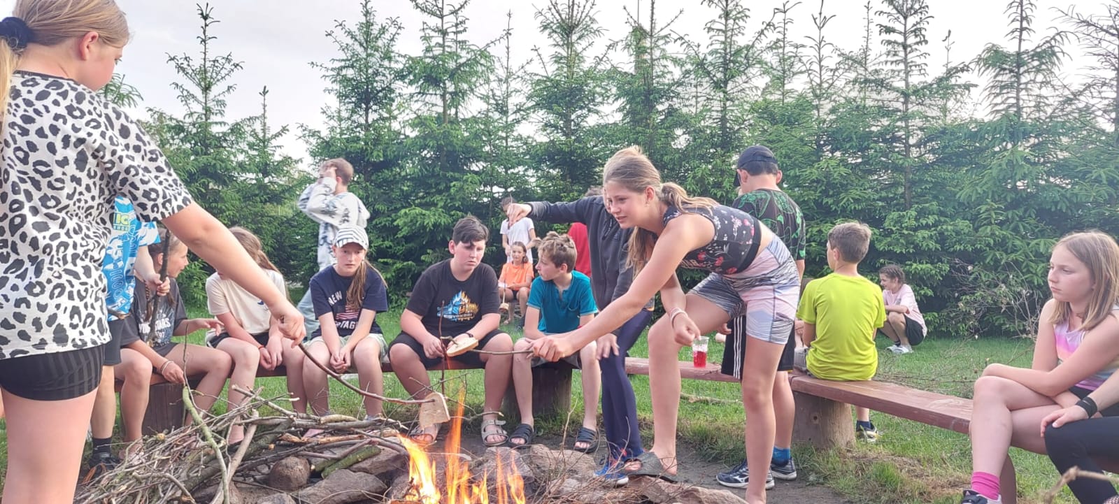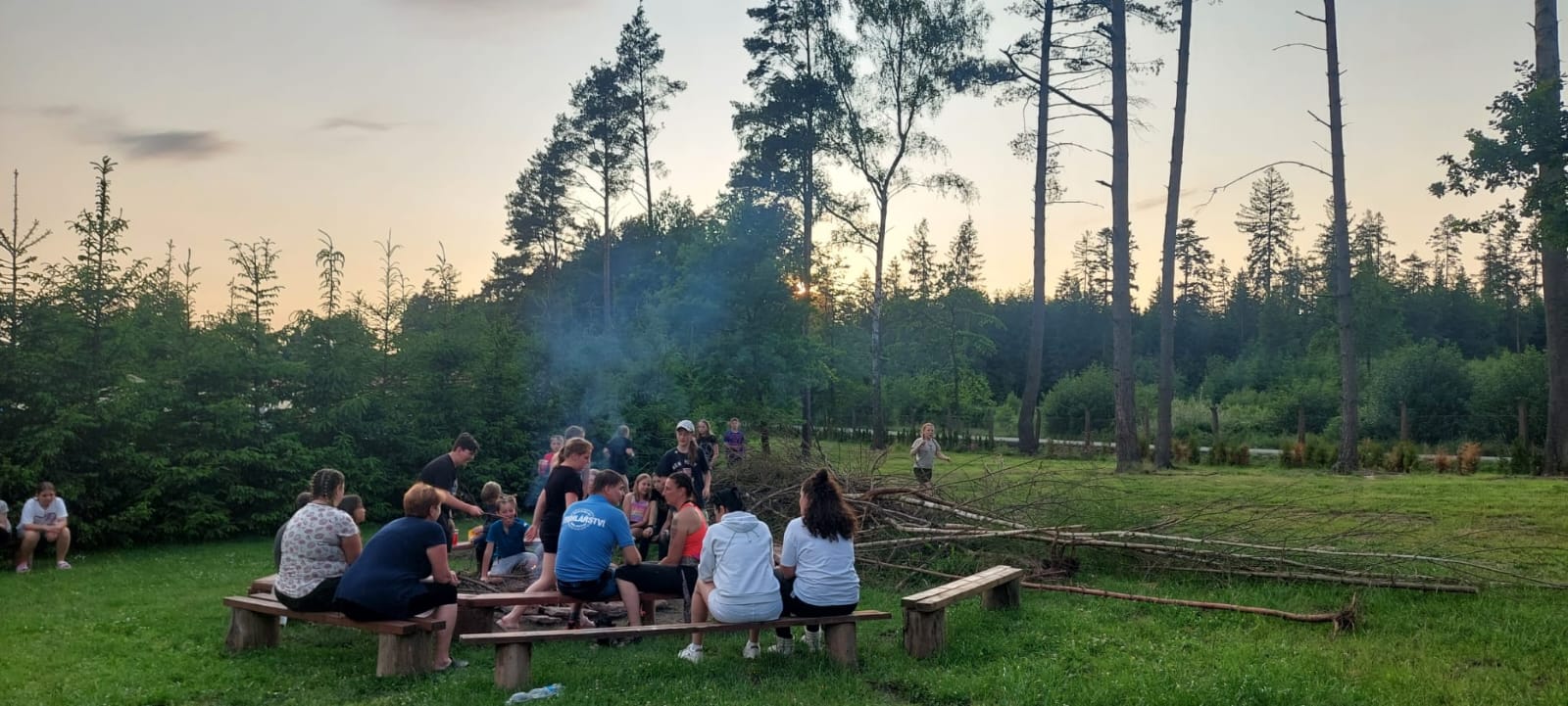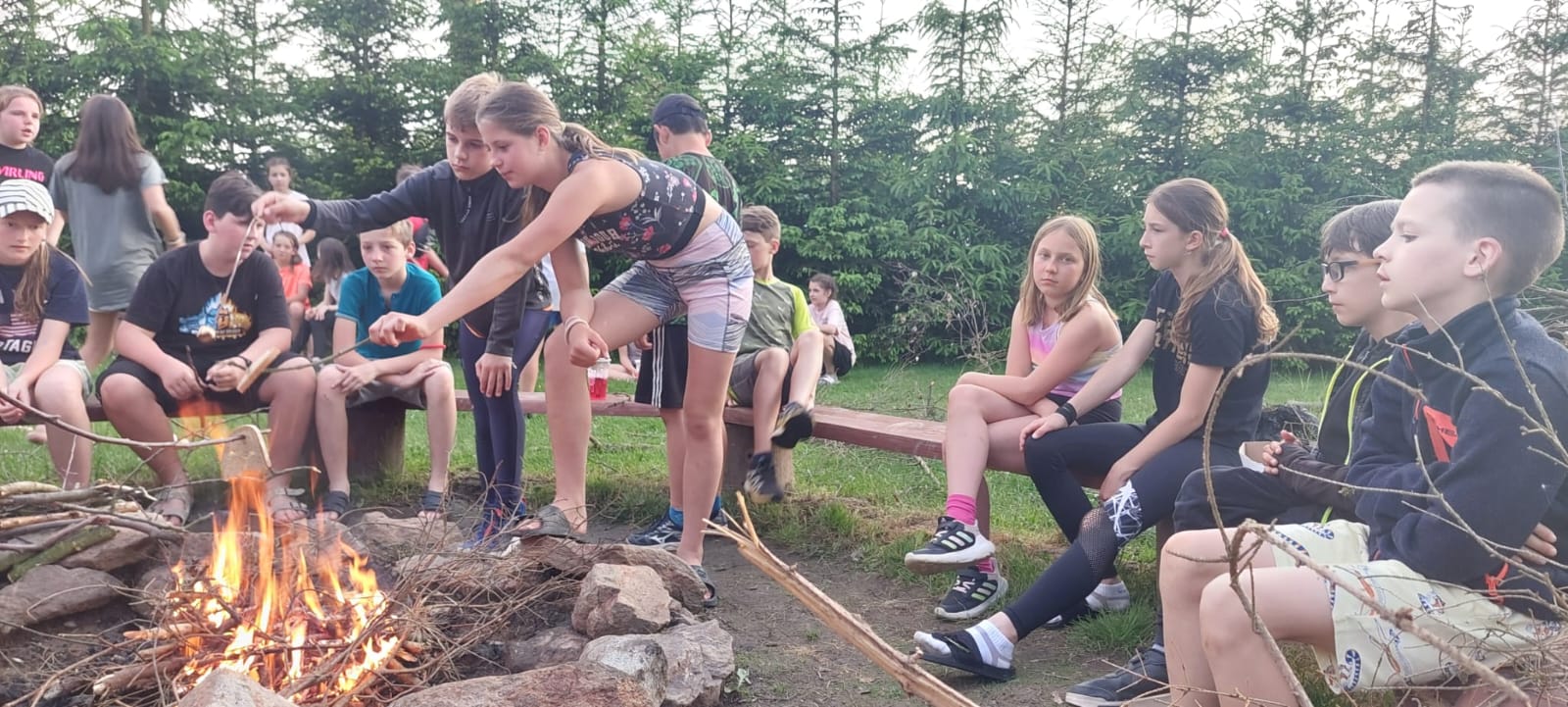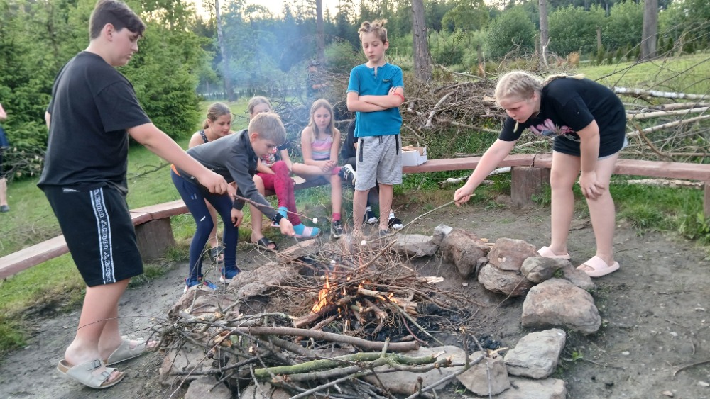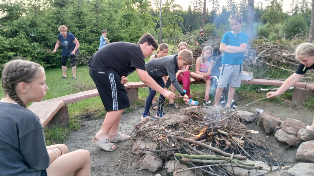 Dnes jsme vlakem vyrazili do Zruče nad Sázavou. Navštívili jsme zámek se zámeckou zahradou, pak jsme vystoupali na rozhlednu Babka s krásným výhledem. Děti si užily kuličkovou dráhu na hřišti a pak jsme se osvěžili koupáním v rybníce. Po večeři jsme si poseděli u ohně a zakončili den hraním s míčem v tělocvičně. Byl to skvělý den plný zábavy a odpočinku!