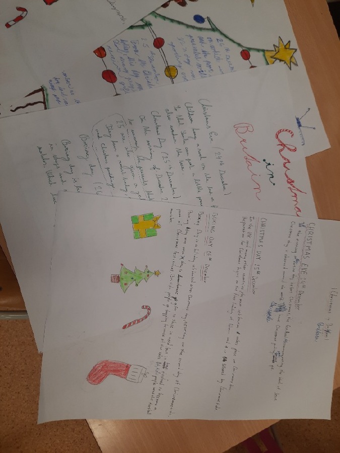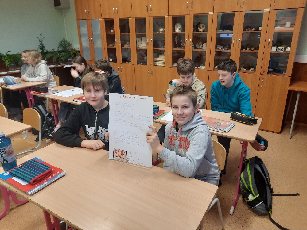 Všechny získané informace žáci následně zpracovali do formy plakátů v anglickém jazyce. Na plakátech prezentovali různé aspekty vánočních oslav v Anglii, například jak probíhá příprava na Vánoce, jaké tradice jsou pro Angličany typické, nebo co si lidé přejí pod stromeček.