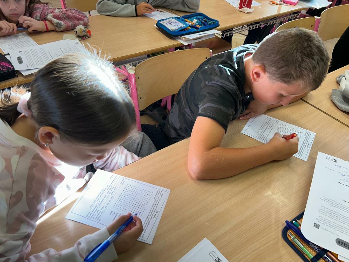 Hledali jsme klíčová slova v osmisměrce, která jsme pak následně doplňovali do textu.