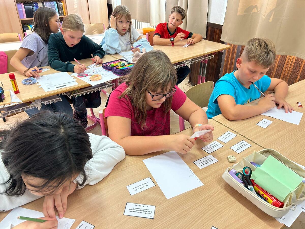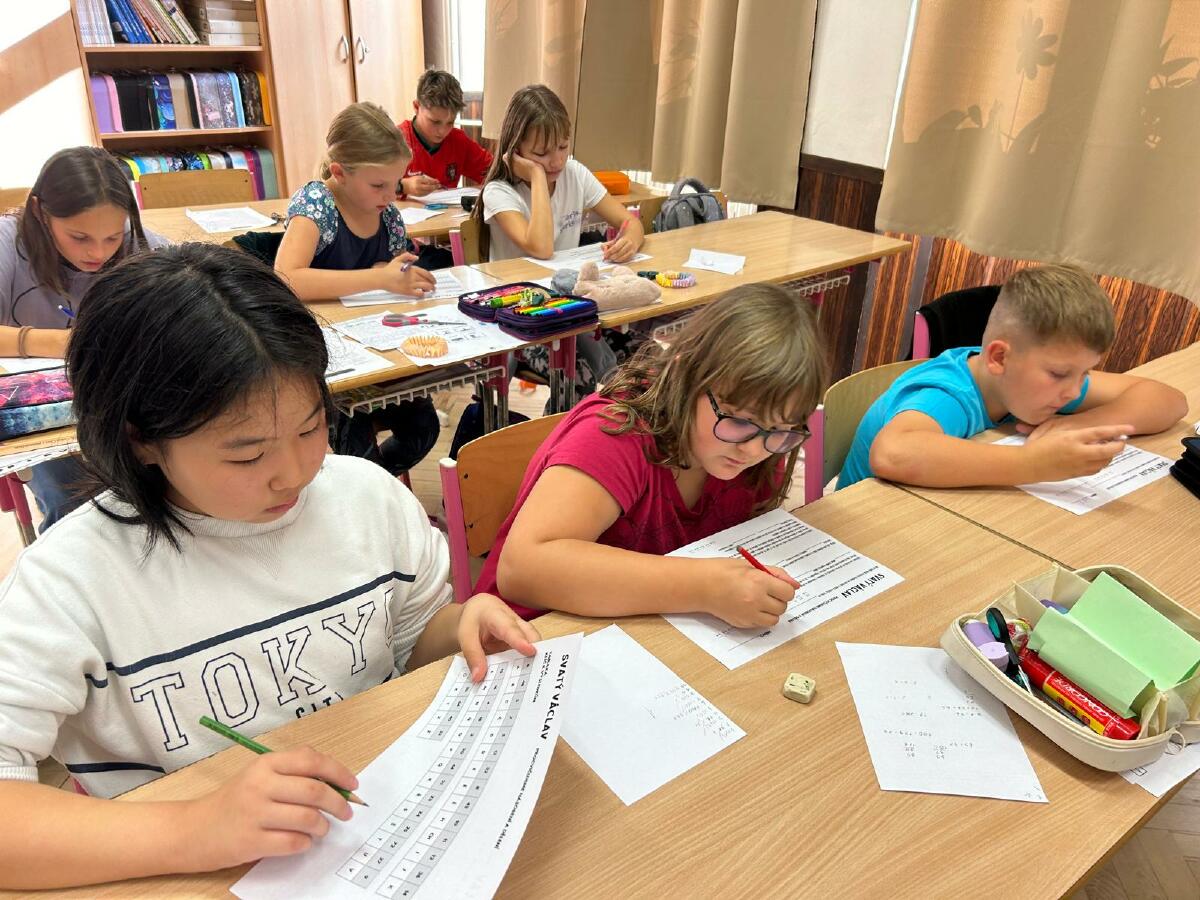 Pak přišla na řadu znalost matematiky. Pomocí násobilky a zašifrované zprávy jsme zjišťovali důležité letopočty a čísla. Ve skupinové práci jsme mohli využit kalkulačky.