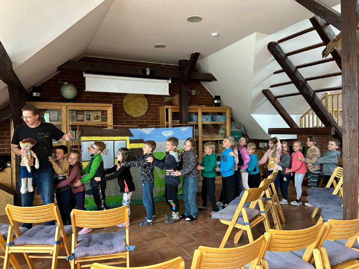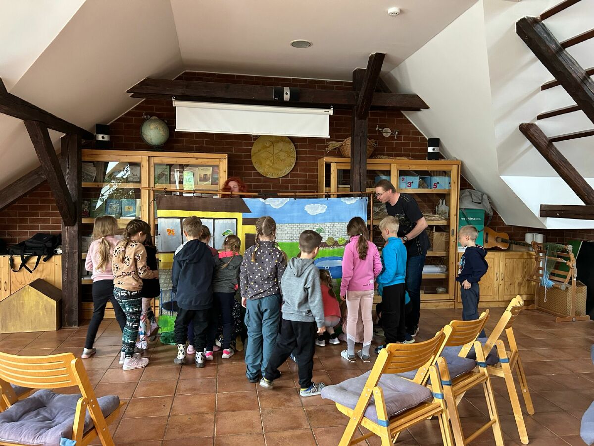 Náš pobyt ve vlašimském Ekocentrum jsme zahájili úvodním divadélkem a reflexivním rozhovorem, obojí na téma Život v zahradě. Poté na nás čekala prohlídka parazoo. Po večeři jsme se vydováděli na hřišti a v zámeckém parku. Tady jsme dokonce zvládli i jednu z okružních cest. Máme se báječně a těšíme se na další zážitky.