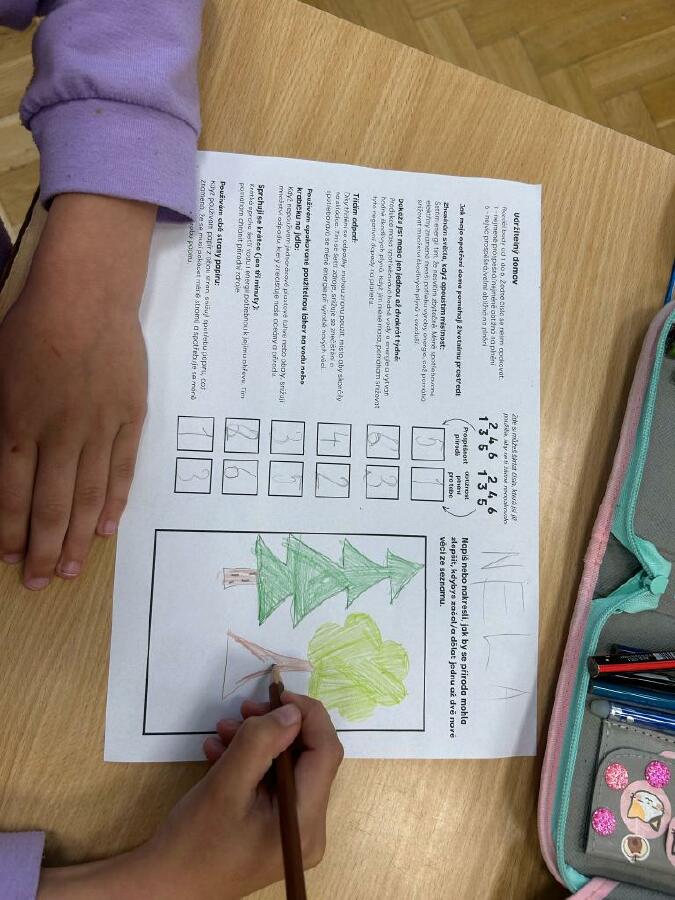 Třeťáci dostali jiný úkol – poslechli si příběh o Klimačarovné zemi, který měl otevřený konec. Hledali různá možná zakončení a zároveň přemýšleli, jak by navržená řešení mohla fungovat v jejich každodenním životě. Neobešlo se to bez spolupráce a odvahy představit své nápady ostatním – a to prostřednictvím obrázků, do kterých své návrhy zaznamenali. Úspěšným splněním šesté mety získali druhou vlajku celé hry.