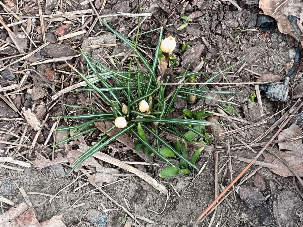 Moc toho zatím nekvete vlivem předchozího chladného počasí, sucha a také velmi tvrdé a ušlapané půdě od neukázněných dětí. Objevili jsme jen rozkvétající malou skupinku krokusů a nápadné žlutozelené čemeřice.